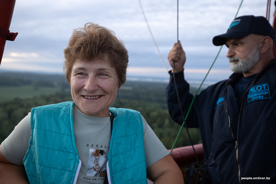 В нашем полете 9 пассажиров. Например, Любовь получила полет на воздушном шаре в подарок на день рождения от сына — тот предложил на выбор несколько вариантов. Он сам делает фото полета с земли. Еще одна пара отмечает приключением совместный отпуск.