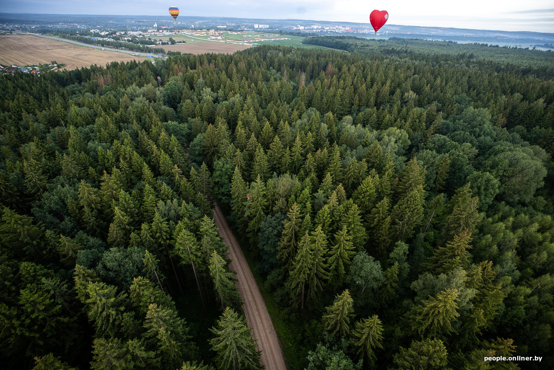Часто полет на шаре выбирают для особого события — предложения. В арсенале клуба как раз есть единственный в Беларуси шар-сердце — для романтических воздушных прогулок. Успеваем обсудить в полете, кого же сегодня может ждать такой поворот событий, но шутка оказывается пророческой — пара из того самого шара-сердца к концу полета оказывается женихом и невестой.