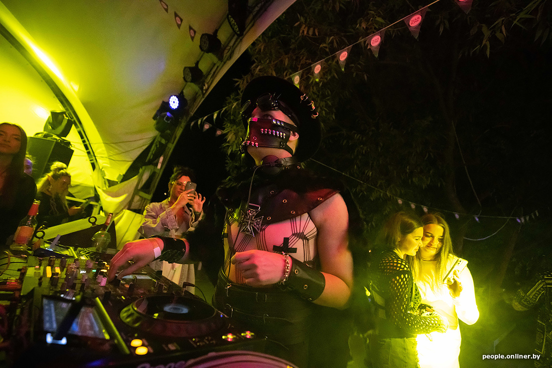 Слева от Жоры — еще одна сцена, поменьше. Там уже нет пафосных декораций — обычная белая палатка. Но диджеи в ней явно любят «пожестче». Преданные адепты минимал-техно проводят время в основном здесь. Тут на танцполе биток, и смешались на нем как обычные рейверы «в гражданском», так и более эксцентричные сказочные персонажи.