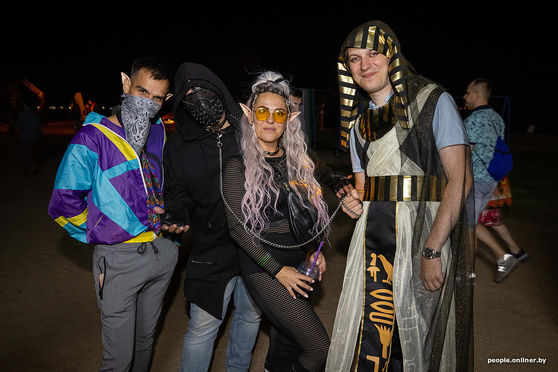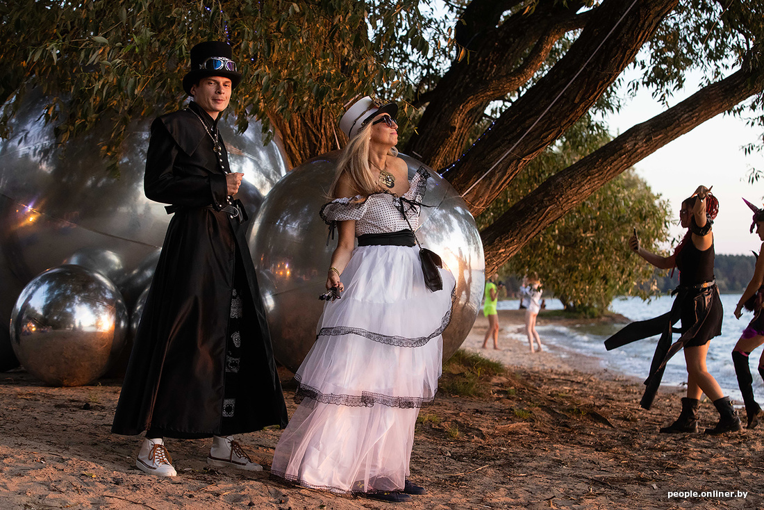 И ведь неплохо вроде! Да, это не огромное высохшее соляное озеро в Неваде, а Минское море. Да, тут вряд ли встретишь вальяжно гуляющего Илона Маска или Джареда Лето в костюме огромного кота, а напитки не выйдет заполучить просто за танец или интересную историю — вынь да положь нехилые 20 рублей за стаканчик. Но ведь суть оригинального фестиваля Burning Man, в общем-то, не во внешней атрибутике. Она в людях: в их головах, в их внутренней свободе и жажде самовыражения. А с этим тут у большинства полный порядок. И мы с фотографом сегодня здесь, чтобы выловить самых свободных и по-хорошему фриковатых.