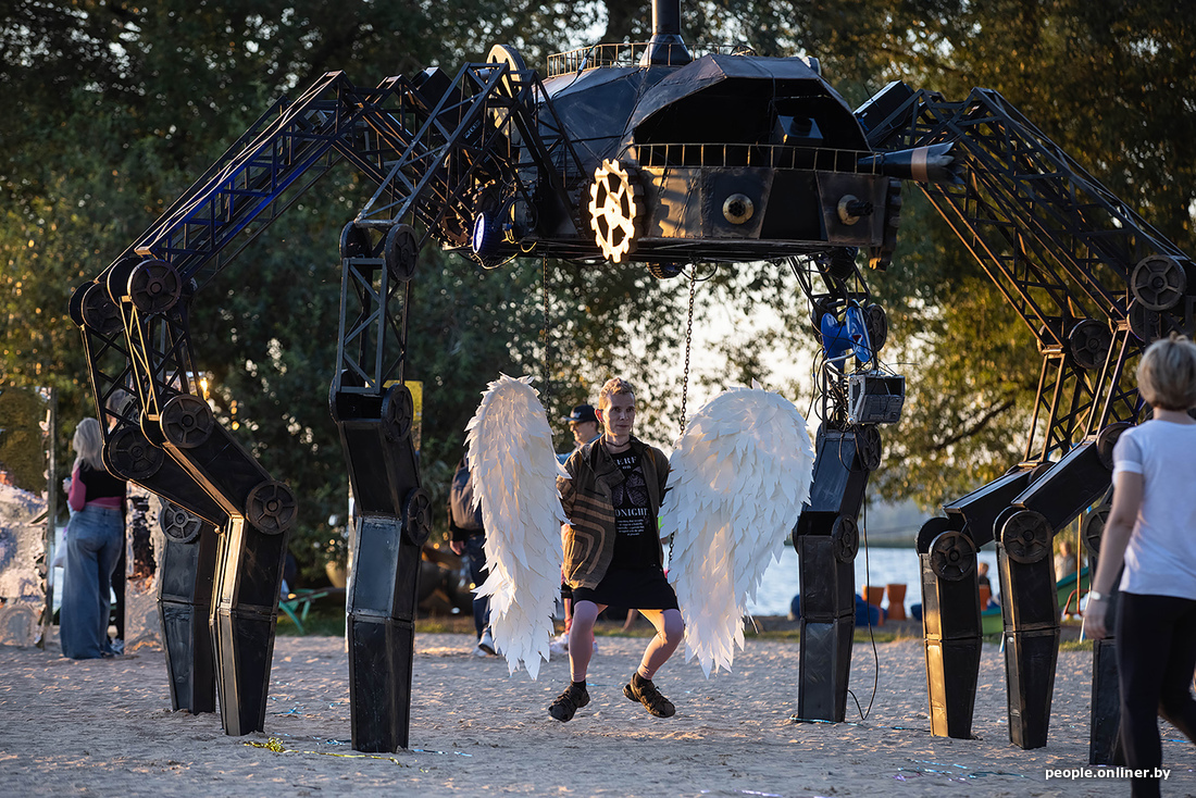 Посреди пляжа №5 стоит огромный железный паук Жора и периодически пышет огнем. Жорой его назвал какой-то парень в светящихся очках на пол-лица и сильно заржал со своей же шутки. А что, ему подходит — записал в заметки. Мы на фестивале Burning Minsk, и в данный момент нас окружают десятки людей, для описания которых еще не придумали правильного слова. Что-то среднее между «Господи, что ты такое?» и «Хах, а это стильно!», помноженное на десять. Так и должно быть: они все правильно уловили месседж, как сказал бы Mr. Freeman.