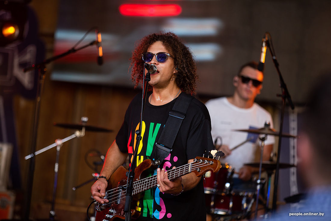 Вот вы слышали что-нибудь о группе O.Lemon? Я тоже нет. И очень зря: тех, кто находился у сцены, раскачало довольно нехило. На вопрос ведущего о жанровой принадлежности солист разве что помотал кудрявой головой и пожал плечами: там и фанк, и чуть-чуть регги, и классический рокешник — кто его разберет, да и какая, в общем-то, разница. Говорят, что O.Lemon — легенды и старички из мира топовых минских кавер-бендов. Так или иначе, сегодня они пришли «со своим», и это «свое» звучало достойно.