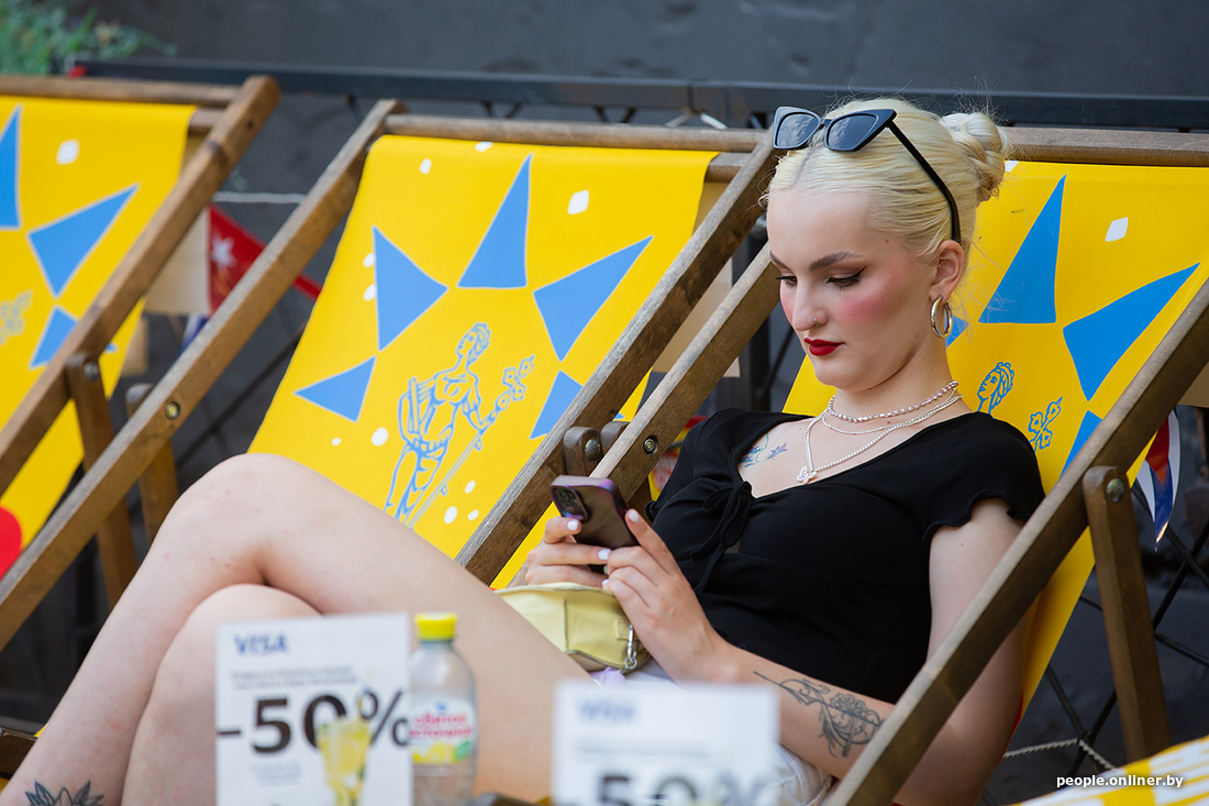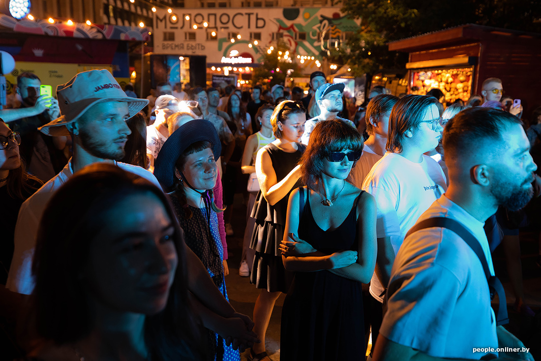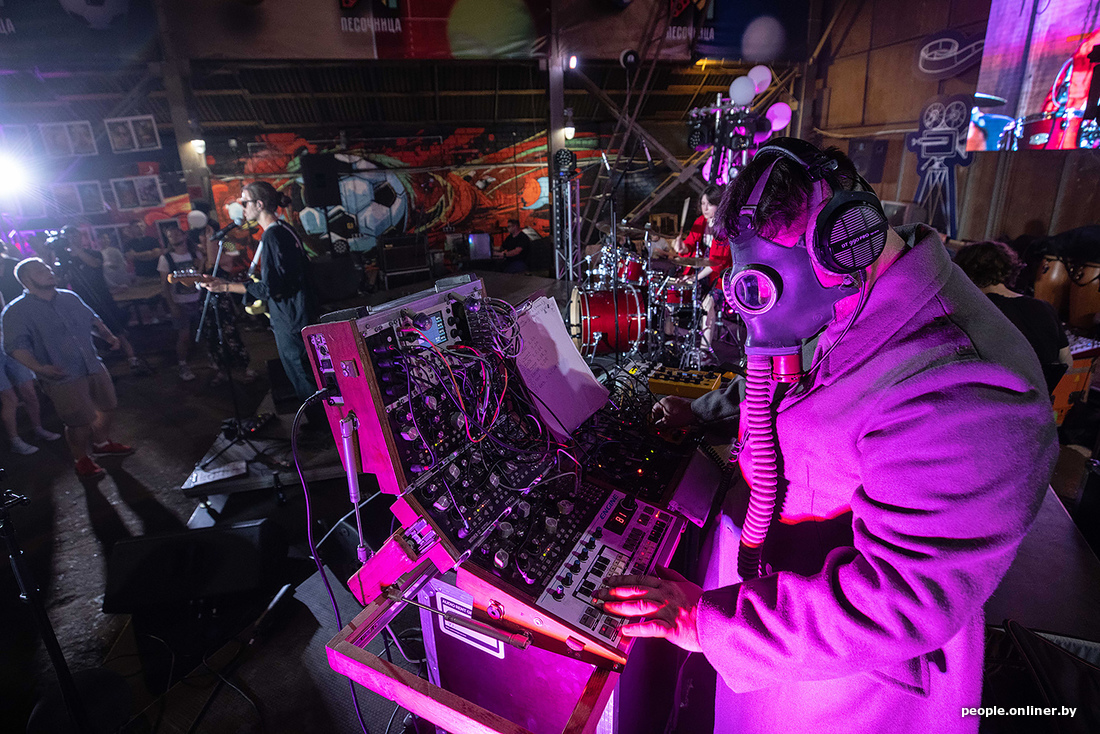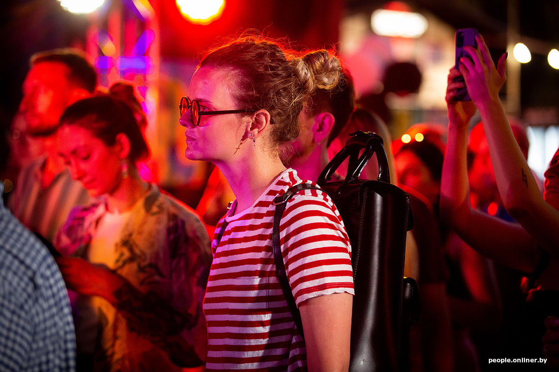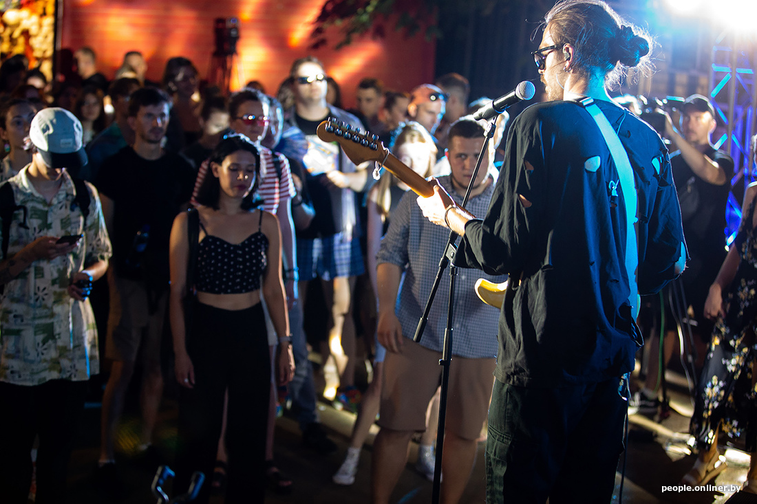 Люди вокруг вроде как тоже не скучают. Днем для гостей феста проводили лекции о кино, а ближе к вечеру подвезли музыкантов. И нет, это не картонные Metallica и Red Hot Chili Peppers, а настоящие белорусские, живые… Правда, вот только кто эти люди?