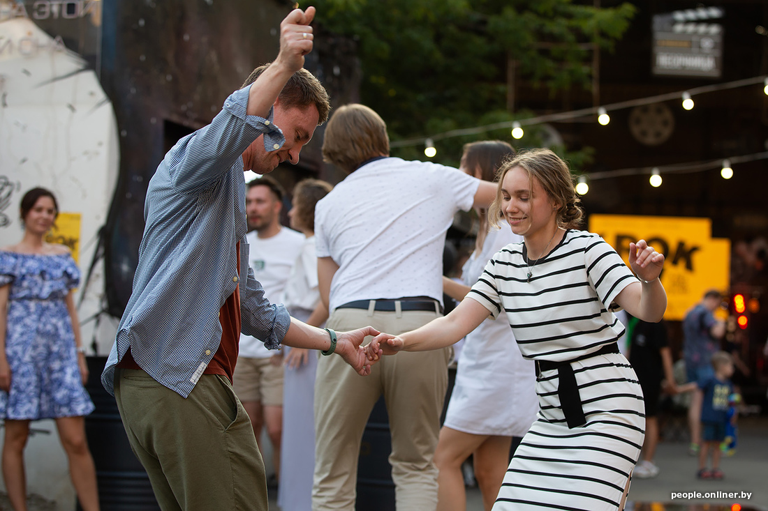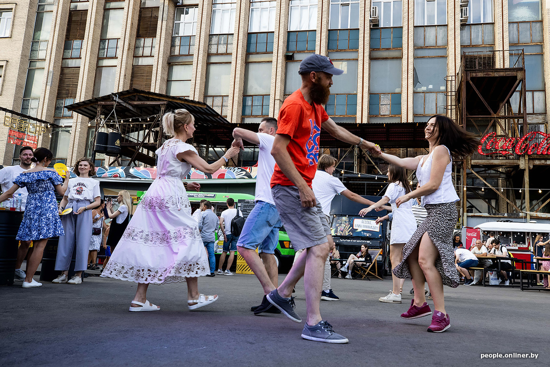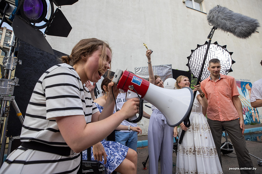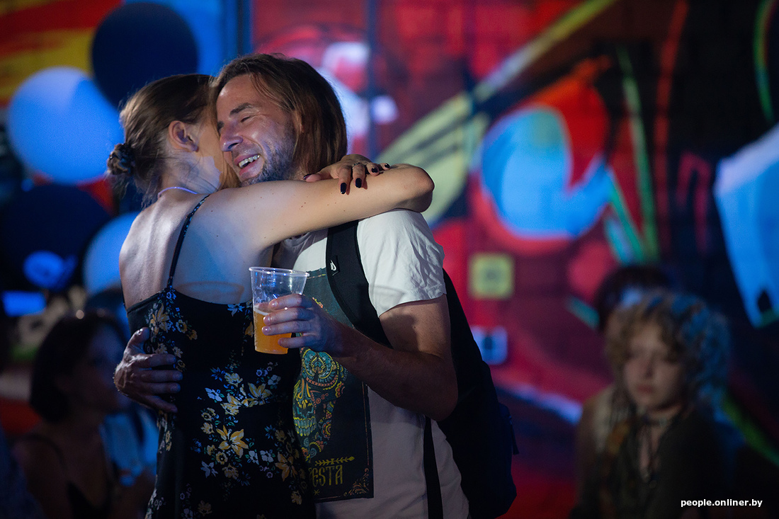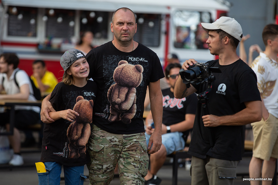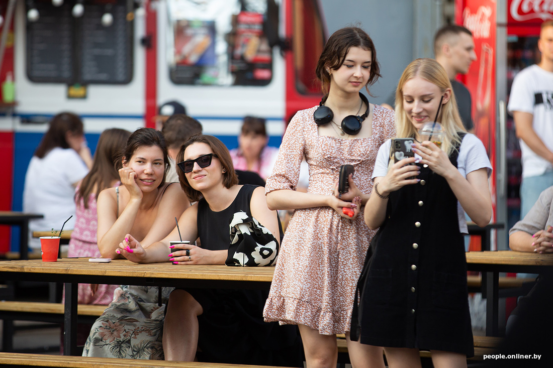 Люди вокруг вроде как тоже не скучают. Днем для гостей феста проводили лекции о кино, а ближе к вечеру подвезли музыкантов. И нет, это не картонные Metallica и Red Hot Chili Peppers, а настоящие белорусские, живые… Правда, вот только кто эти люди?