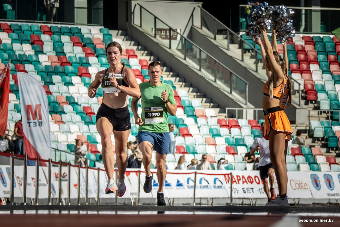 Среди женщин первой на стадион прибежала легкоатлетка и участница Олимпийских игр Марина Доманцевич (ее результат — 1 час 15 минут и 15 секунд). Всего на 30 секунд позже финишировала еще одна белорусская спортсменка — Ольга Немогай. За ней — триатлонистка Анна Максимова (ее время — 1 час 18 минут и 34 секунды).