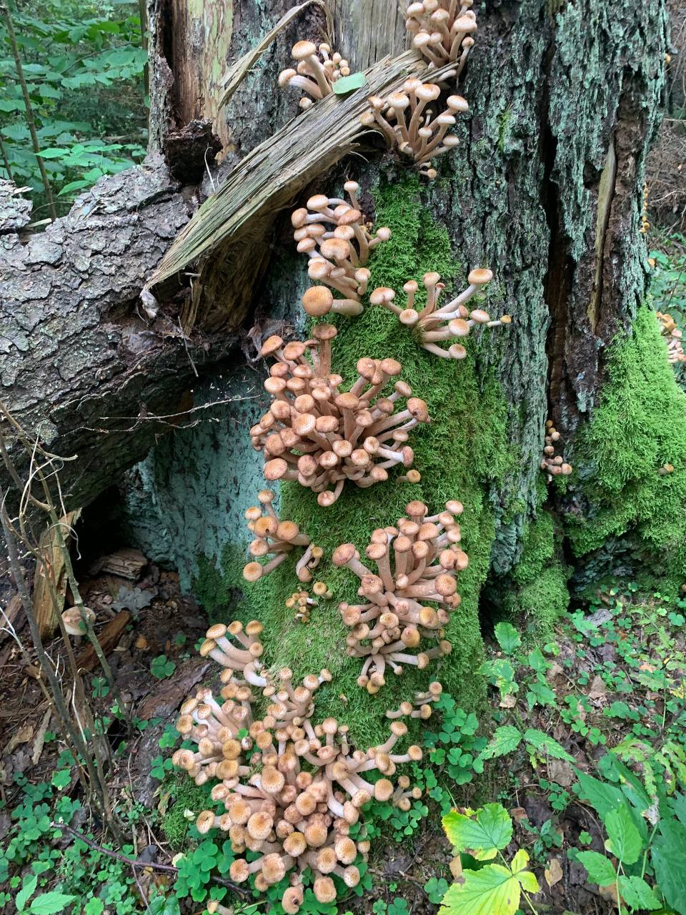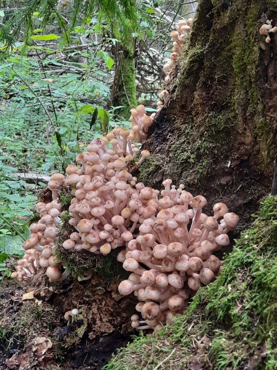 В прошлые годы таких нашествий опят мы не припомним. Видимо, дожди накаляют обстановку. Пытайтесь прорваться за бревно.