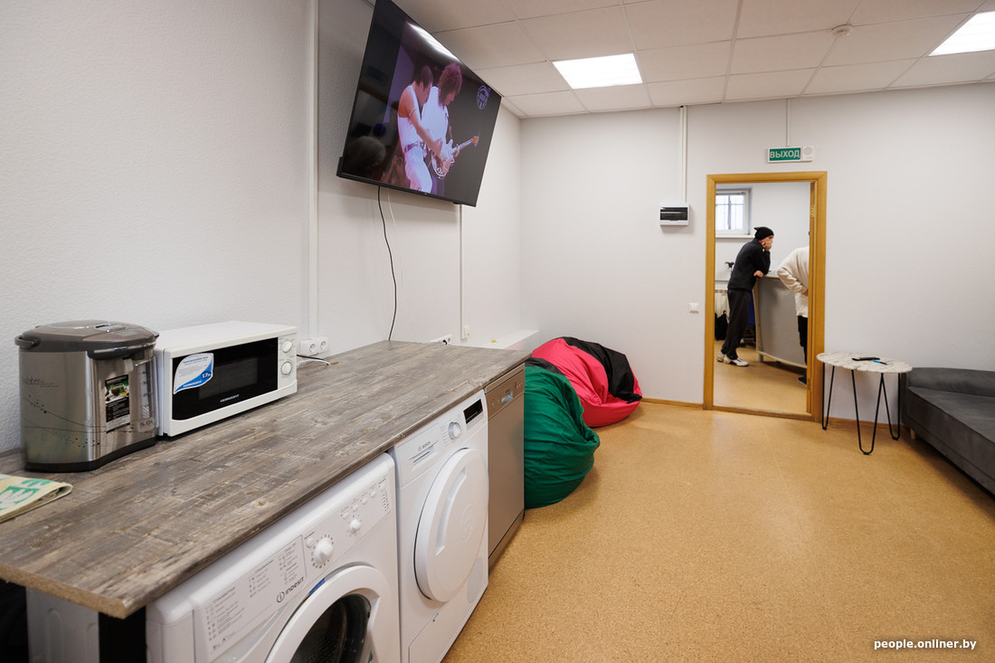 Уютное, теплое помещение. Тут можно постирать вещи или приготовить поесть: есть и стиральная машина, и плита. На стене висит большой телевизор, а к нему подключена PlayStation. В углу стоит мягкий диван. В общем, жилищные условия вполне себе ничего. Но нет, эта комната не сдается. Так выглядит «дроп-ин-центр» организации «Позитивное движение». Сюда приходят наркопотребители, когда больше им пойти некуда.