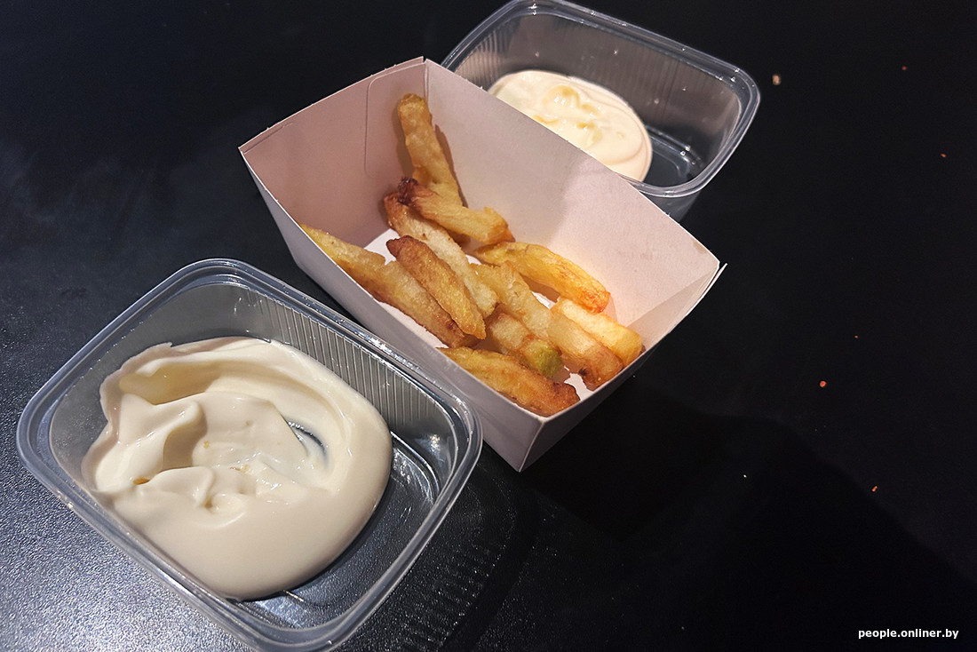 И снова удивляемся радушию местных, для которых туристы в городе только в радость (если они, конечно, приехали не за фейерверками). Не успели мы уточнить на кассе, есть ли у них та самая опция с двумя соусами, как перед нам без лишних слов и бесплатно поставили две плошки с майонезом и целую порцию картошки фри.