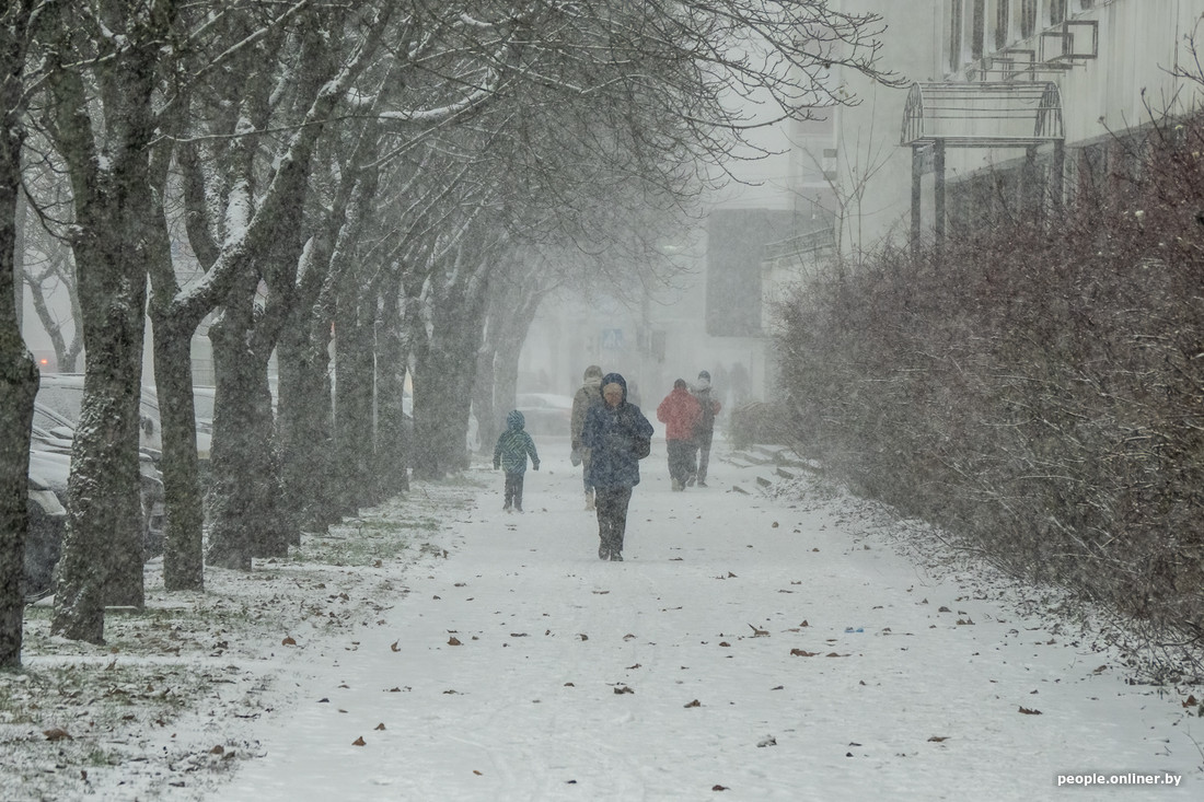 Мало что удивляет так же сильно, как снег в конце ноября. Никогда такого не было — и вот опять в соцсетях массово появляются публикации «С первым настоящим снегом!». Правда, рассуждать об этом возможно, только добравшись до спасительного теплого офиса или дома. Если философствовать на улице, есть шанс сделать 10 очепяток и не донести смысл своего послания: слишком дрожат руки и замутнен обзор. Мы присоединились к флешмобу первого настоящего противостояния снежной стихии в этом году — и вышли на улицы понаблюдать за минчанами.