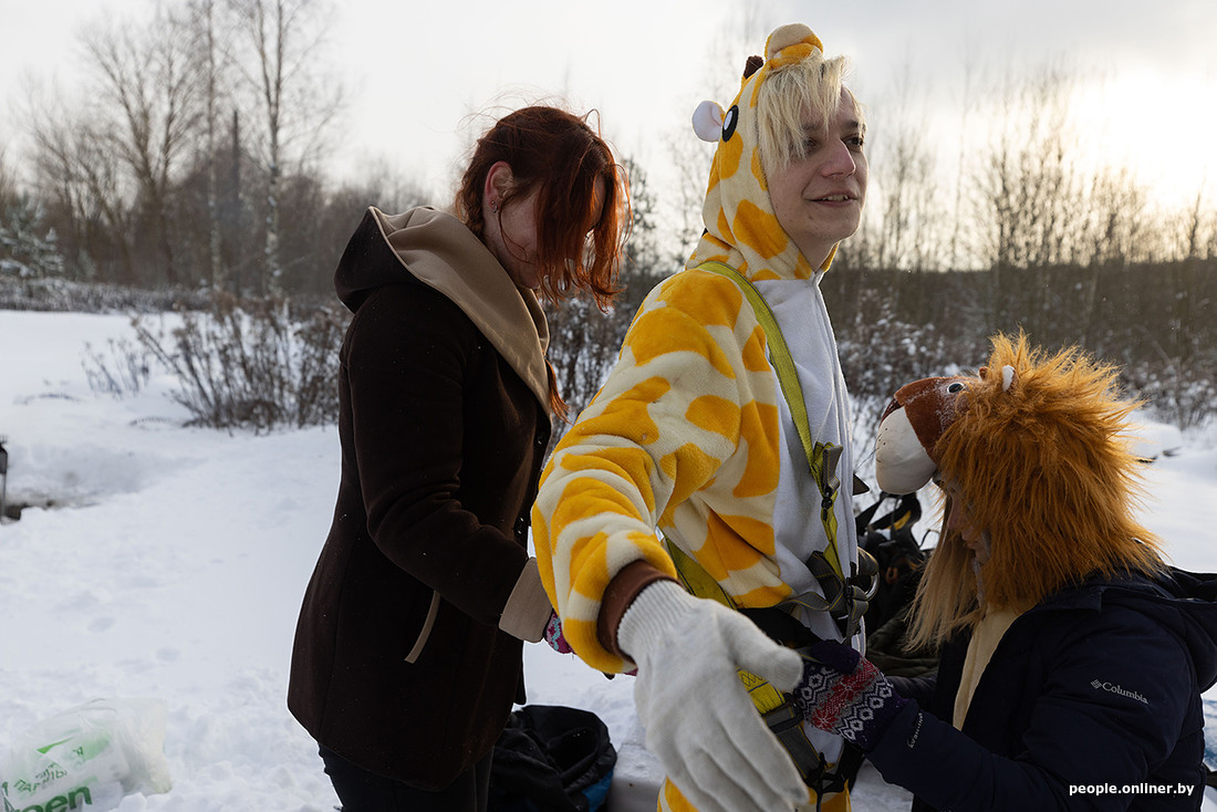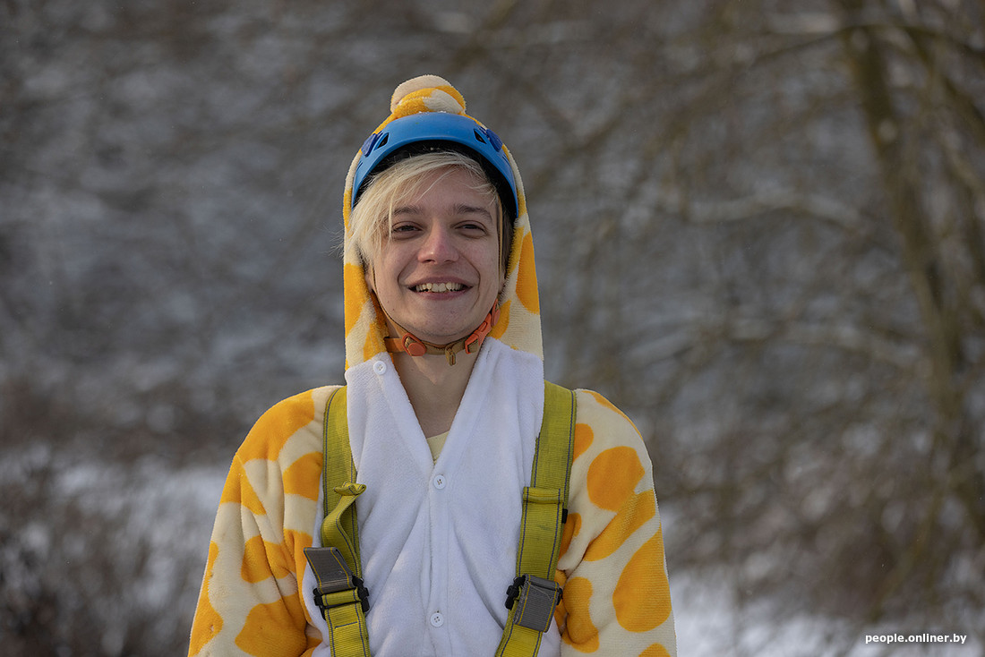 В этот же момент с верхушки 35-метровой башни, сделав заднее сальто, срывается парень в костюме мыши. Это Никита — еще один участник команды. Ему, кстати, и принадлежит идея прыгать в пижамах кигуруми. Когда с огромных вышек летят пушистые зверята, это смотрится довольно смешно и эпично. Особенно если в этот момент они орут матом от ужаса. Но вообще, у ребят скидка для тех, кто прыгнет в каком-то костюме, а я, знаете ли, не дурак. Я жираф. По крайней мере на сегодня.