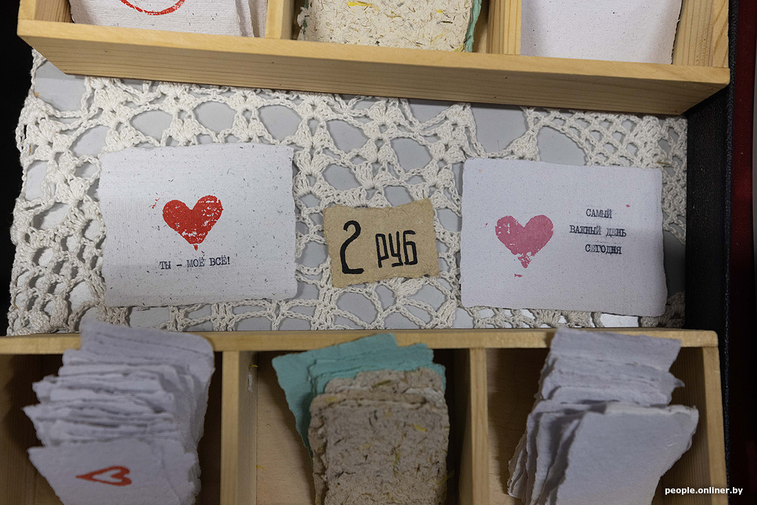 «С заботой о природе!!! Специально для Онлайнера» — выстукивают кнопки 50-летней машинки по маленькому клочку дико приятной на ощупь бумаги. Кстати, восстановление подобных печатных машинок — еще одно хобби Леси.
