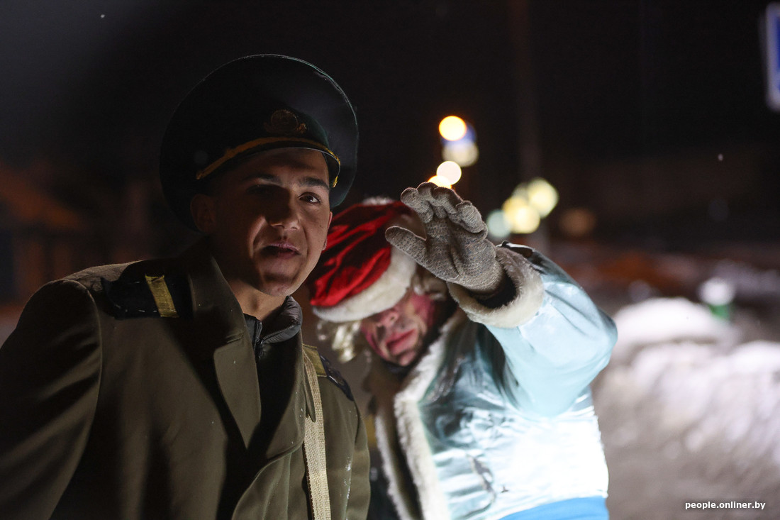 Но оказалось, что здесь не все так просто и у образа более глубокий и давний смысл. Товарищ Дмитрия (тот, что в костюме Деда Мороза) подчеркнул, что это образ солдата, который прошел войну и вернулся раненым. Вот эти ранения и скрывает балаклава. Услышав рассказ друга, Дмитрий одобрительно покивал головой, мол, так и было запланировано.