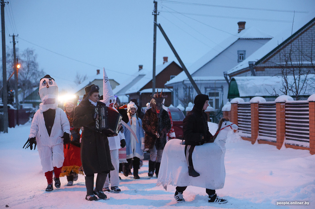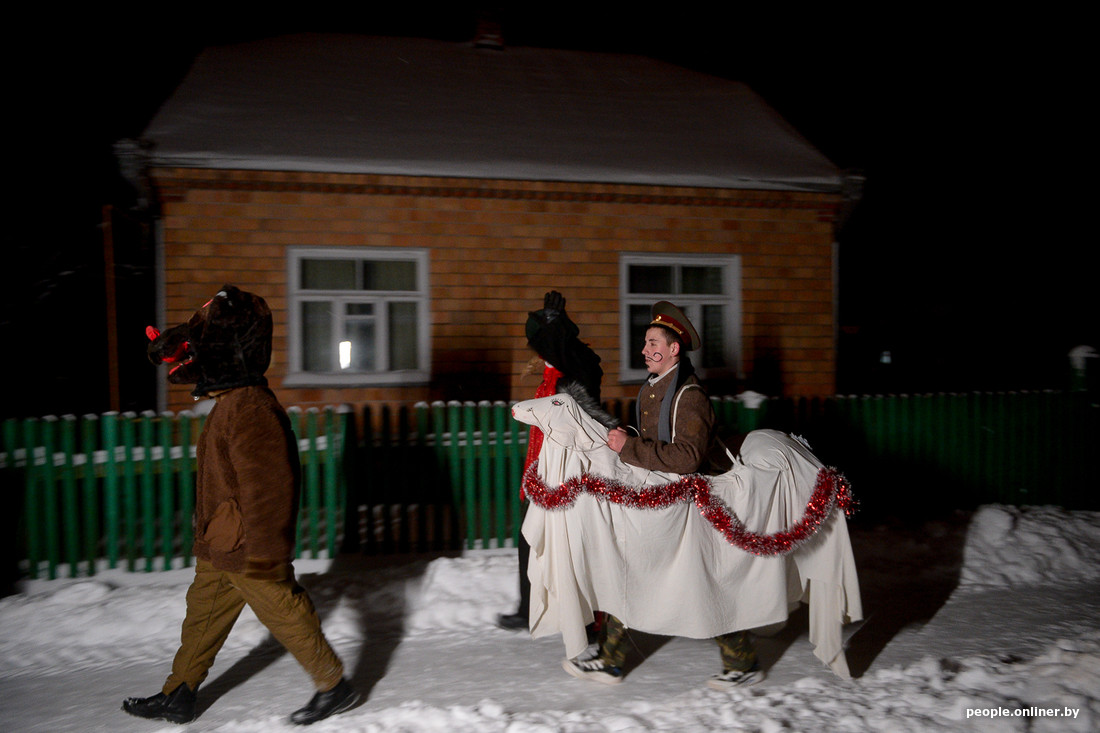 — «Коники» — это праздник, душа Давид-Городка! Мы ждем его целый год. Мы идем в любой дом, где горит свет, — и нас встречают. И если двери открыты, ты обязан в них зайти. Хозяева делятся с нами угощениями, могут денежку дать или спиртное. В общем, кто что может, — говорит Сергей. — Я «бегал» в разных костюмах (даже Бабой Ягой был), но последние лет 10—20 я [выступаю] в образе коня.