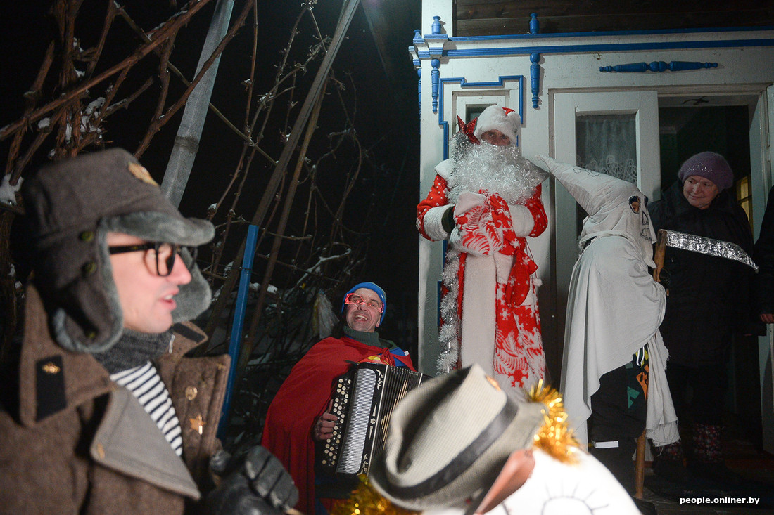 Найти команду, которая щедрует на старый Новый год в Давид-Городке, несложно. Стоит вечером только свернуть в стороны от главной улицы, как наткнешься на компанию в странных одежках. Мы первым делом поехали на улицу Рыбацкую — здесь начинается маршрут группы Натальи Коваленко. Она щедрует уже более 50 лет и все никак не может остановиться.