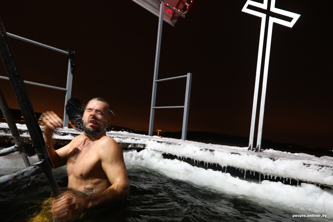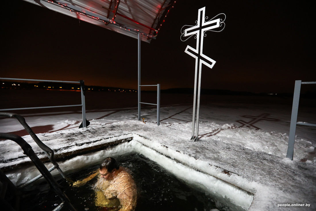 Трижды окунуться на Крещение в проруби — давняя народная традиция, которую ежегодно поддерживают тысячи белорусов. Обычай нравится далеко не всем священникам, врачи тоже смотрят на него скептически, но от этого ничего не меняется: люди как приседали в январской воде, так и продолжают это делать. Мы сгоняли на оборудованные в Минске купели, поговорили с человеком, который на наших глазах провел в холодной воде около семи минут, и записали несколько историй о том, что заставляет людей зимой лезть в прорубь.