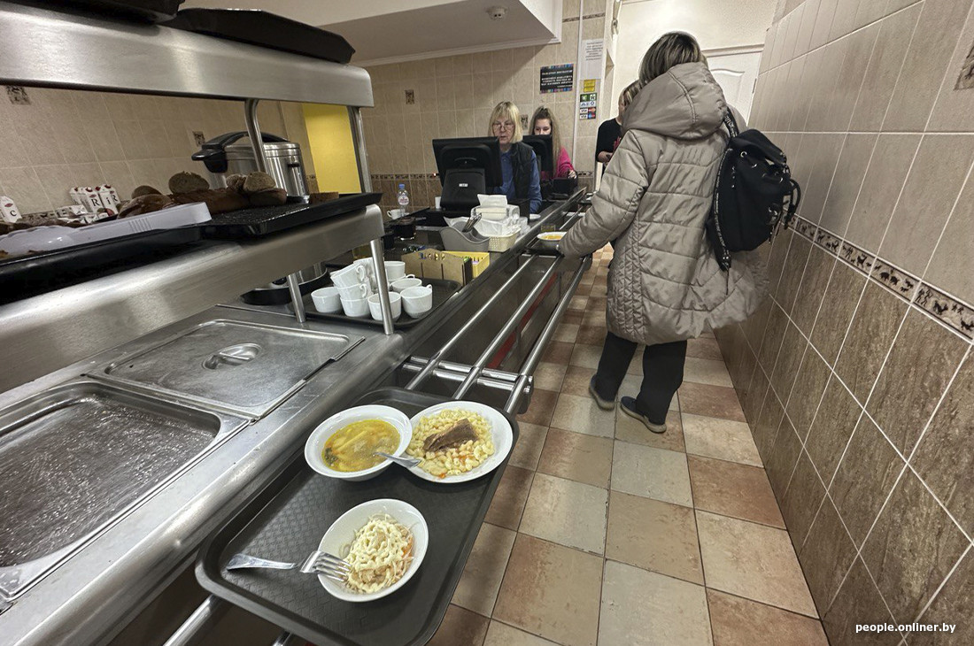 В районе станции метро «Академия наук» хватает кафе и фастфудных ресторанов, но если потянуться вглубь, к улице Якуба Коласа, можно наткнуться и на несколько недорогих столовок. Одна из самых узнаваемых расположена в университетском городке БНТУ. Помещение выглядит основательно — с росписью и резными деревянными воротцами у кассы.