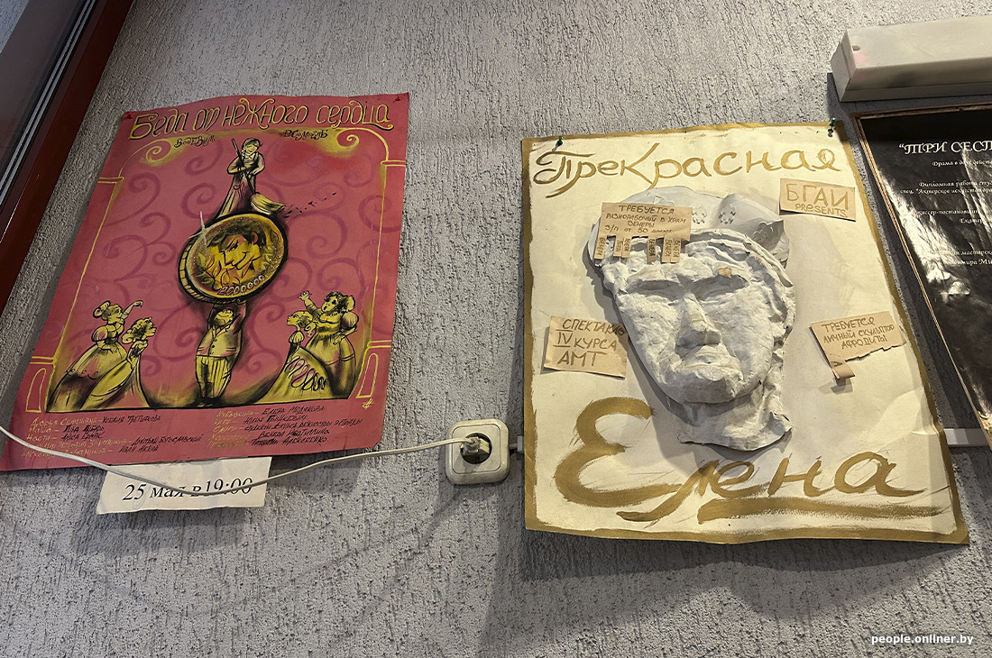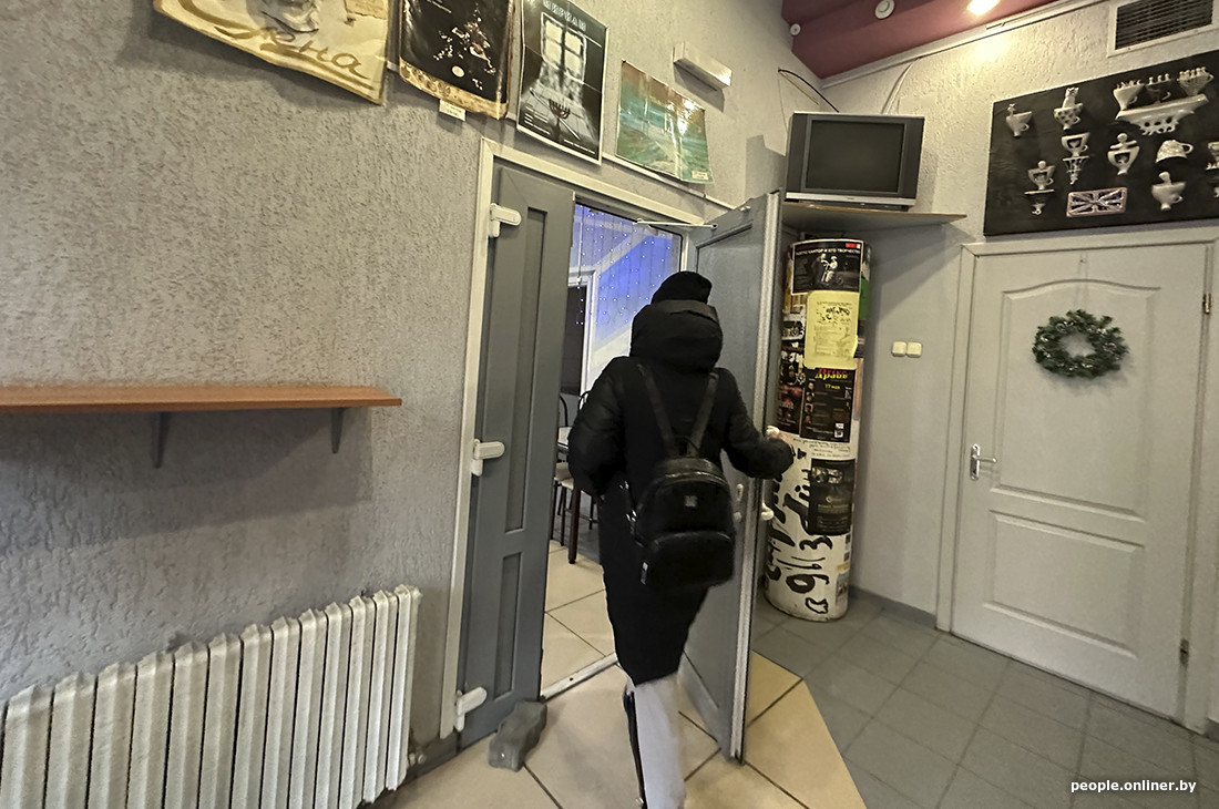 Кафе «Мюнхаузен» — заведение Академии искусств. Чтобы это понять, даже не нужно смотреть на вывеску. Стоит только зайти внутрь, как погружаешься в мир афиш студенческих постановок и прочее творчество. Когда-то прямо у входа в зал стояли гипсовые человеческие фигуры во весь рост, но со временем их куда-то унесли. А жаль, было эстетично.