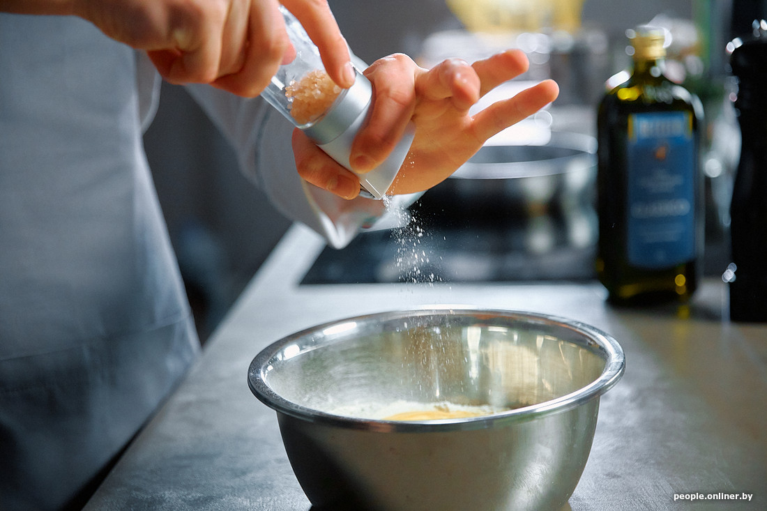 Вода, соль, перец — по вкусу. Дима еще добавляет немного сахара. Максим не остается в стороне и парирует: «Сахар — чисто итальянский принцип — просто потому, что у них томаты более кислые. С нашими можно обойтись и без него».