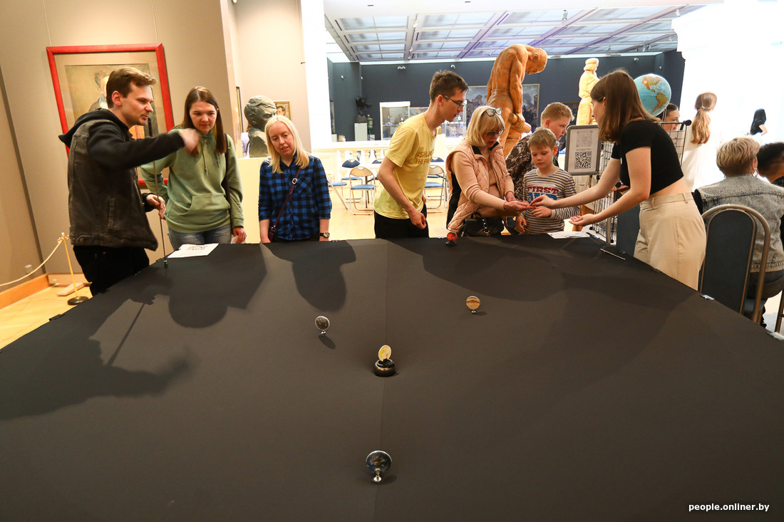 Вчера вечером в Беларуси вновь случилась «Ночь музеев», которая в этом году прошла на тему «Музеи: образование и исследования». Только в Минске специальные программы подготовили 37 музеев и арт-пространств. Мы заглянули в несколько локаций: посмотрите, как белорусы приобщались к прекрасному.
