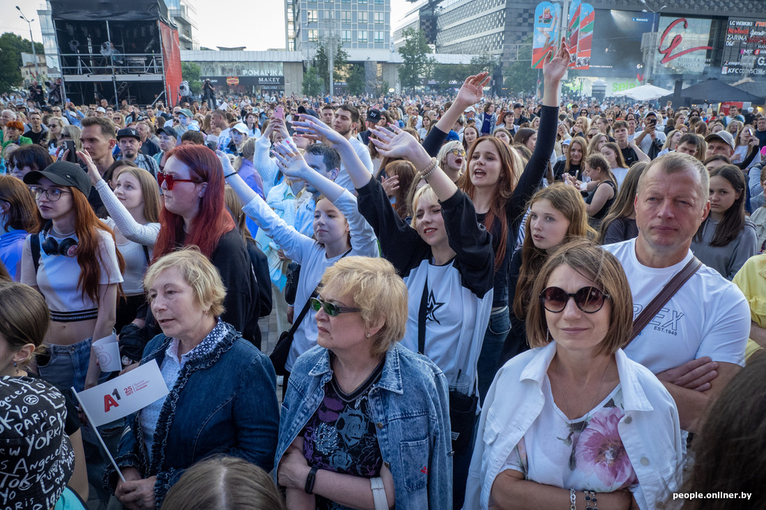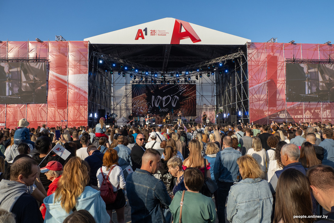 Вчера, 8 июня, возле Дворца спорта в Минске состоялся большой бесплатный концерт, приуроченный к 25-летию компании A1. Утром и днем, с 10:00 до 17:00, гости наслаждались фильмами и мультфильмами под открытым небом от онлайн-кинотеатра Voka и участвовали в киноквизах, которые оказались отличным способом размять мозги перед вечерним концертом. Наш фоторепортаж с события.