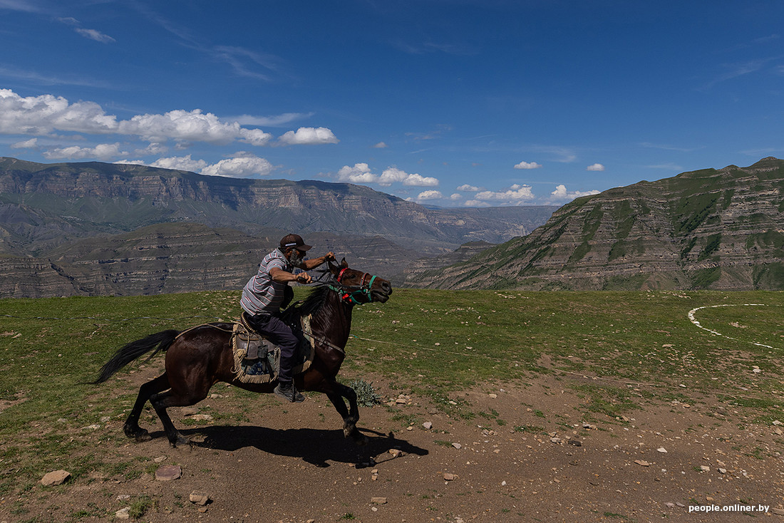 «Наоборот, трусливые долго не живут! Это все неправду говорят. А я смелых вижу сразу», — смеется наш проводник. По пути успеваем узнать краткий пересказ его бурной биографии. Главные вехи — 4 жены и 12 детей, 13-й на подходе. В Махачкале Ахмед бывает по несколько раз на неделе, но долго прожить без гор не может, всегда тянет домой.