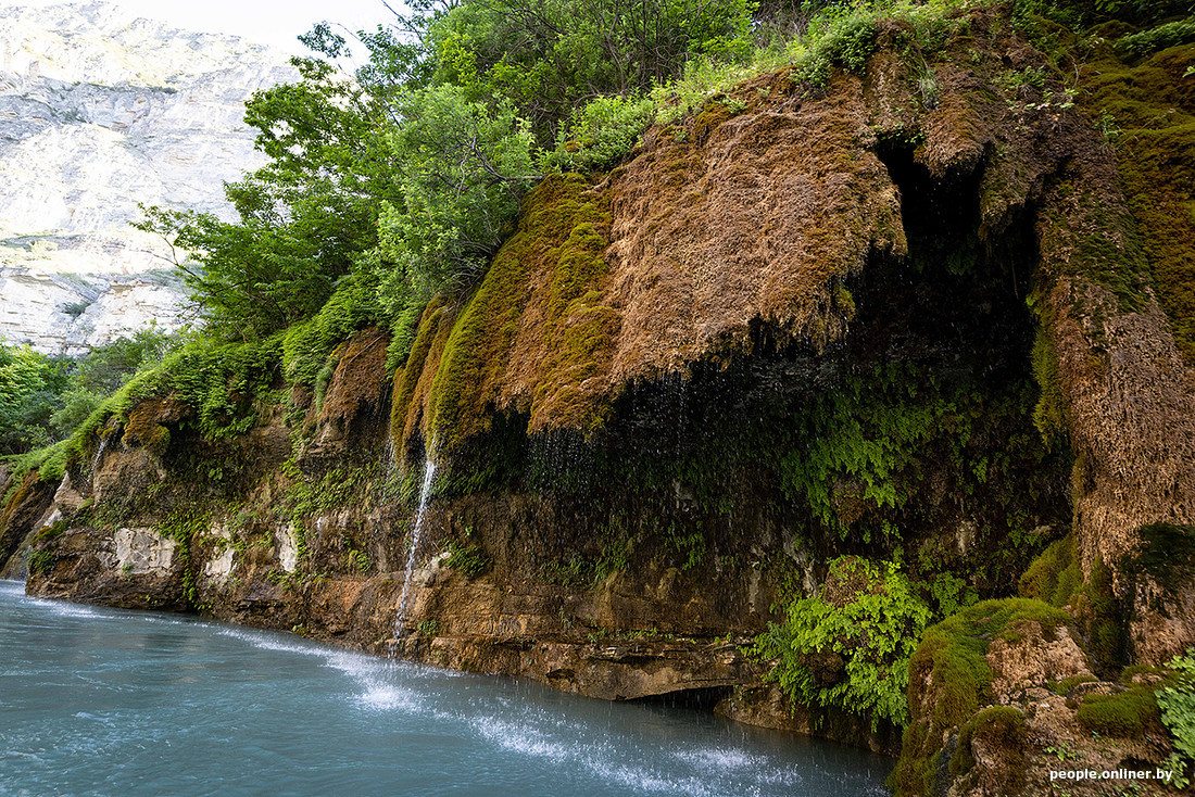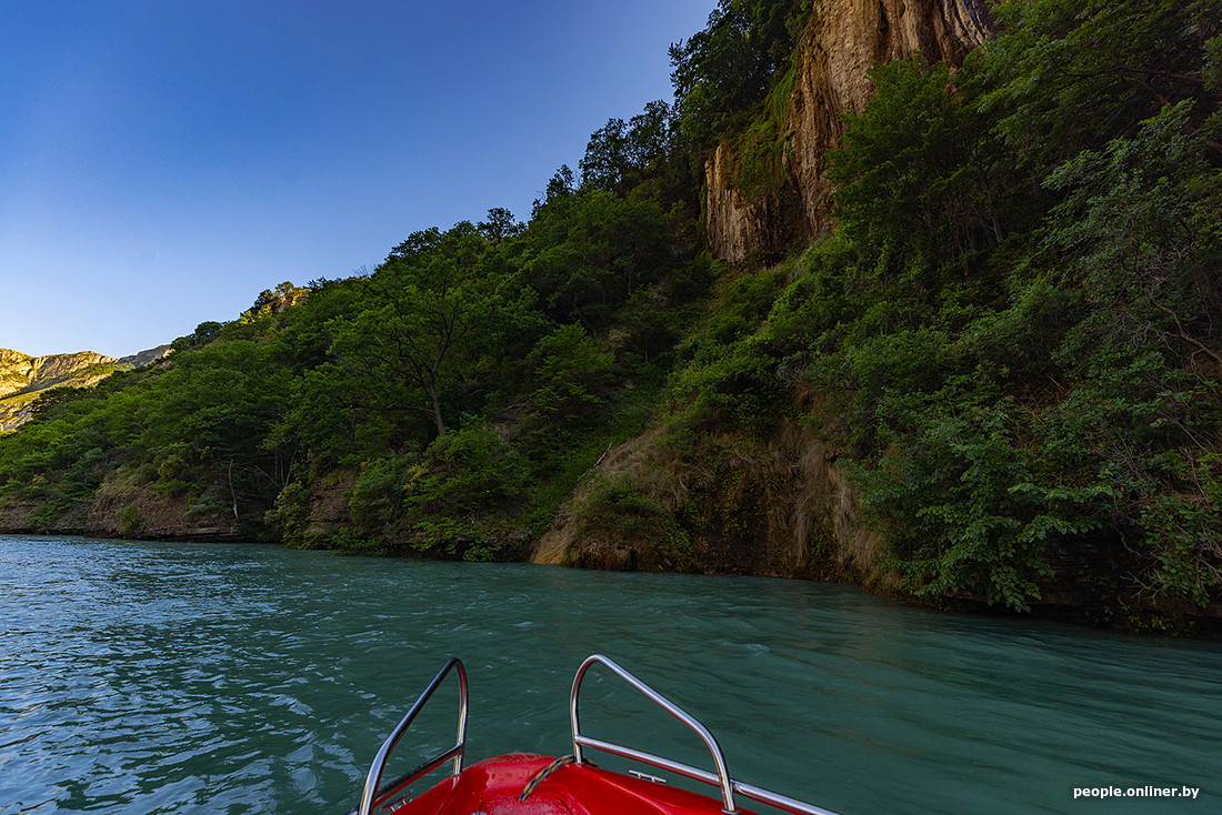Моменты «Формулы-1» на воде перемешивались с легким покачиванием на волнах. В те минуты можно было дотянуться рукой, чтобы сполоснуться в водопаде или попить воды из каньона. Да, она абсолютно чистая! Такой цвет водоему придают частицы известняка и голубой глины, которые не вредят качеству источника.