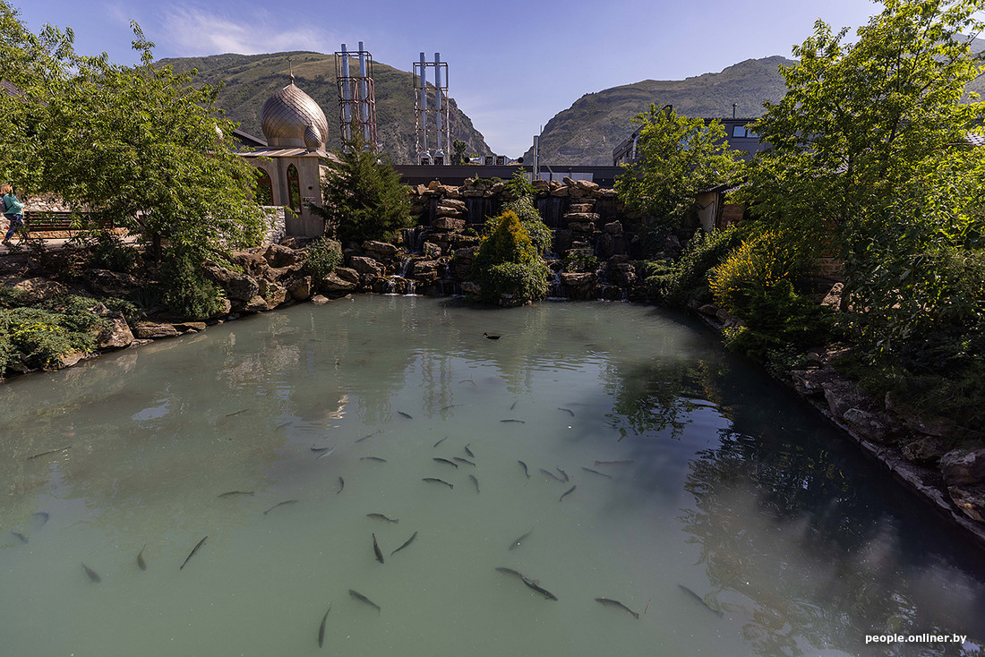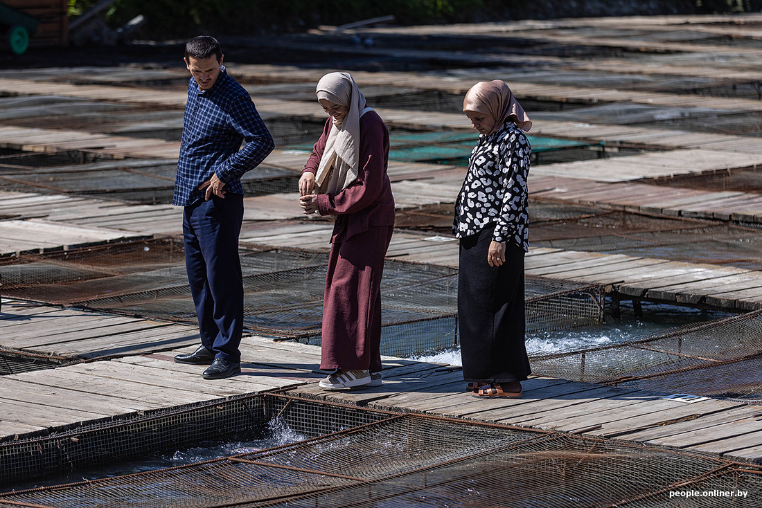 После экскурсии все обычно отправляются в рыбное хозяйство на обед. «Рыбов» показывают и дают возможность покормить за символические 50 российских рублей, но в целом видно их и издалека.