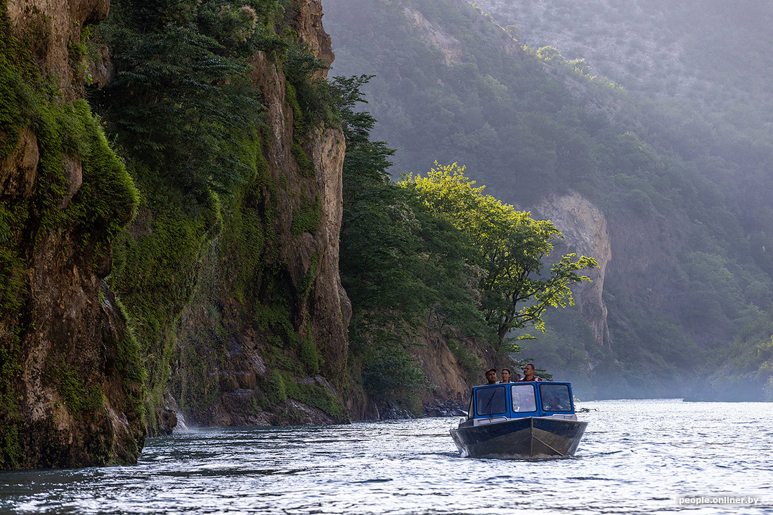 И наконец, кульминация — возможность прикоснуться к каньону-рекордсмену. Телепортироваться вниз не выйдет, даже на зиплайне. Поэтому снова пересаживаемся на более мощный транспорт и отправляемся к самому подножию гор. Всего 40 минут пути и легкой (нет) тряски — и мы на месте. Фиксированной цены на водную «экскурсию» нет, все зависит от количества человек и умения договариваться.