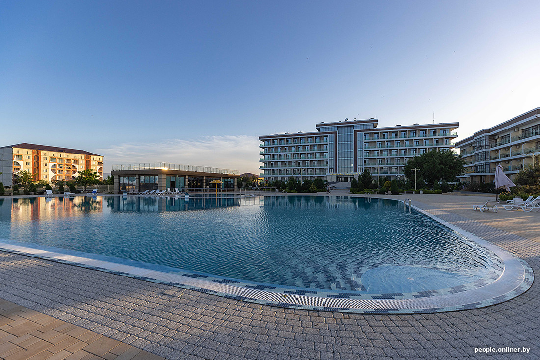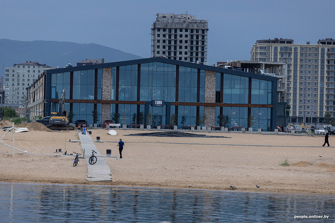 В один из таких свежепостроенных комплексов мы заглянули в Дербенте. Ремонт только закончился, первая береговая линия, свой бассейн. Правда, и цена кусается: 10 000 российских рублей (370 белорусских) в сутки. Но можно найти варианты и гораздо дешевле. Цена даже за отдельную квартиру в разгар сезона стартует от 1000 российских рублей (37 белорусских) в сутки. Но море вряд ли будет видно из окна.