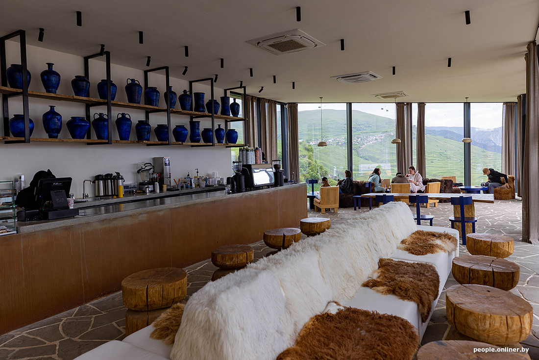 Раз мы уже перескочили с Махачкалы, то расскажем и о наиболее впечатлившей нас за все путешествие кофейне. Находилась она в селе Матлас. В скором времени поблизости обещают открыть современный горнолыжный курорт (повод наведаться в Дагестан зимой). А пока можно насладиться видом Матласского плато и водопада, под которым после перерыва на кофе можно прогуляться. Вам не показалось: не возле или у подножия, а прямо под ним. Если кто-то в поездке успеет заскучать по Зеленому Лугу, это оптимальный вариант побороть ностальгию.