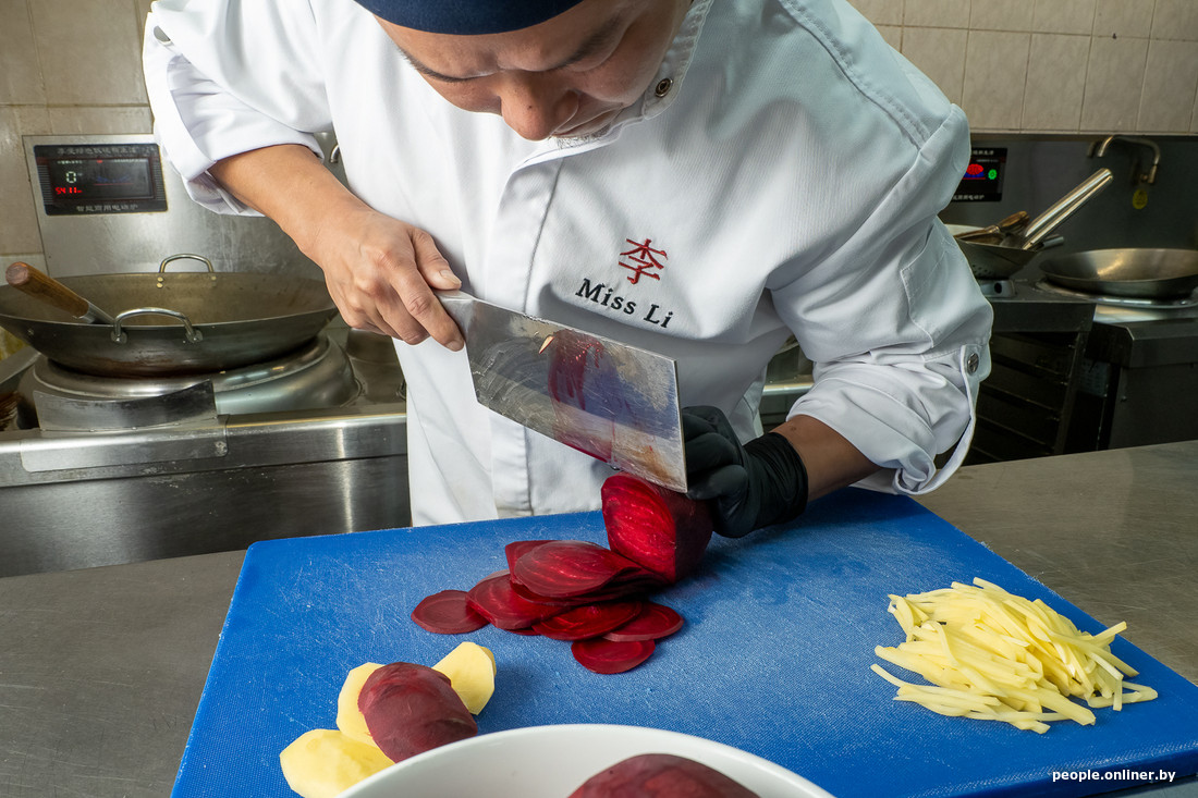 Согласно условиям испытания, из ингредиентов для холодника Фану нужно сообразить что угодно, но использовать все, что есть на столе — даже недооцененный китайцами кефир и красную свеклу, которую иностранный повар, как оказалось, впервые в жизни увидел только после приезда в Беларусь. Во всяком случае в центральной провинции Хэнань, откуда родом Фан, наш обожаемый корнеплод совсем не в ходу, так что задача начинает поблескивать второй звездочкой.