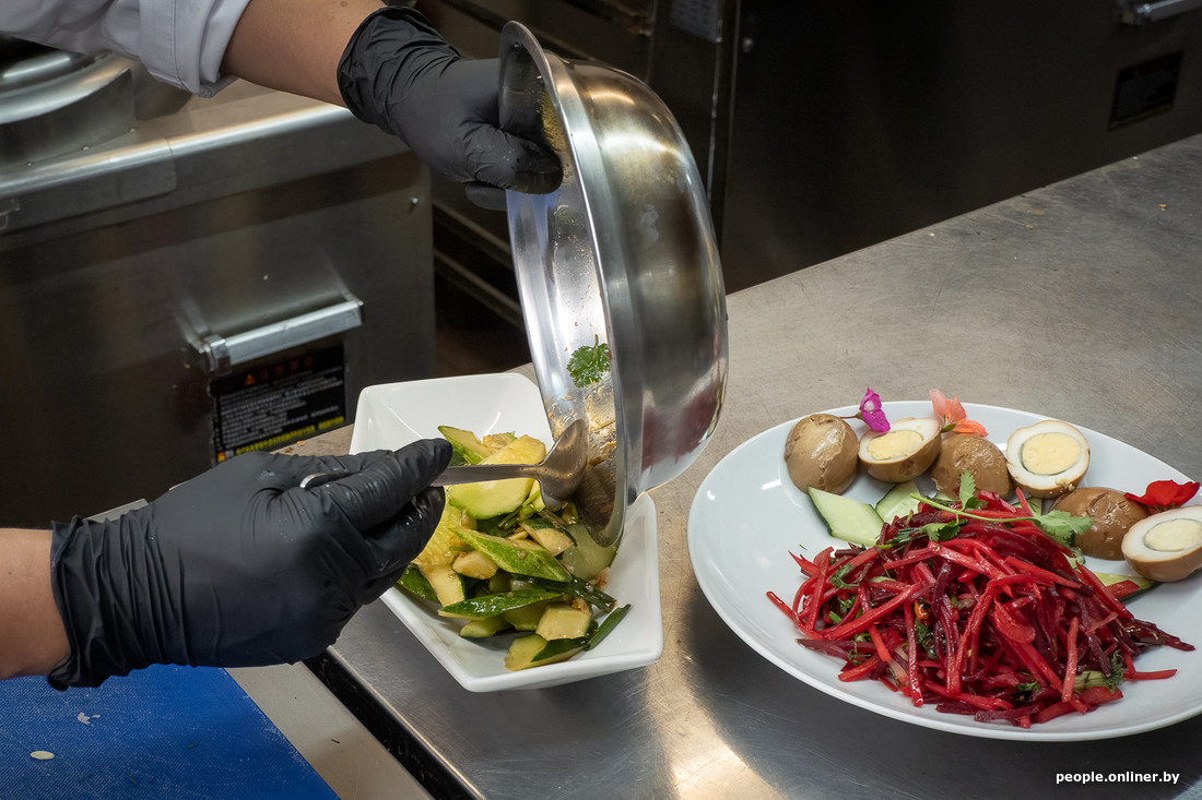 Кое-как одолев керамические палочки, приступаю к дегустации. Начинаю со свекольного салата и сразу осознаю, что, если бы сказали попробовать его с закрытыми глазами, я бы никогда в жизни не понял, что именно ем. Картошку получается определить разве что по приятному хрусту, а вот свекла приобрела какой-то совсем инопланетный вкус и аромат. С огурцами все чуть проще, но тоже интересно: остренькие, вприкуску с кефиром залетают на ура. Пытаюсь все слегка смешивать, общий вердикт не меняется: пряно, ярко, необычно и действительно вкусно.