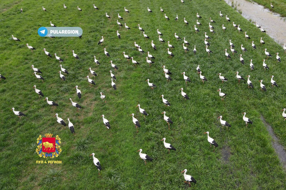 По словам специалиста, основных причин может быть две. Первая — аисты просто отдыхают (да, в очень большой компании), вторая — они выбирают место для будущего гнездования.