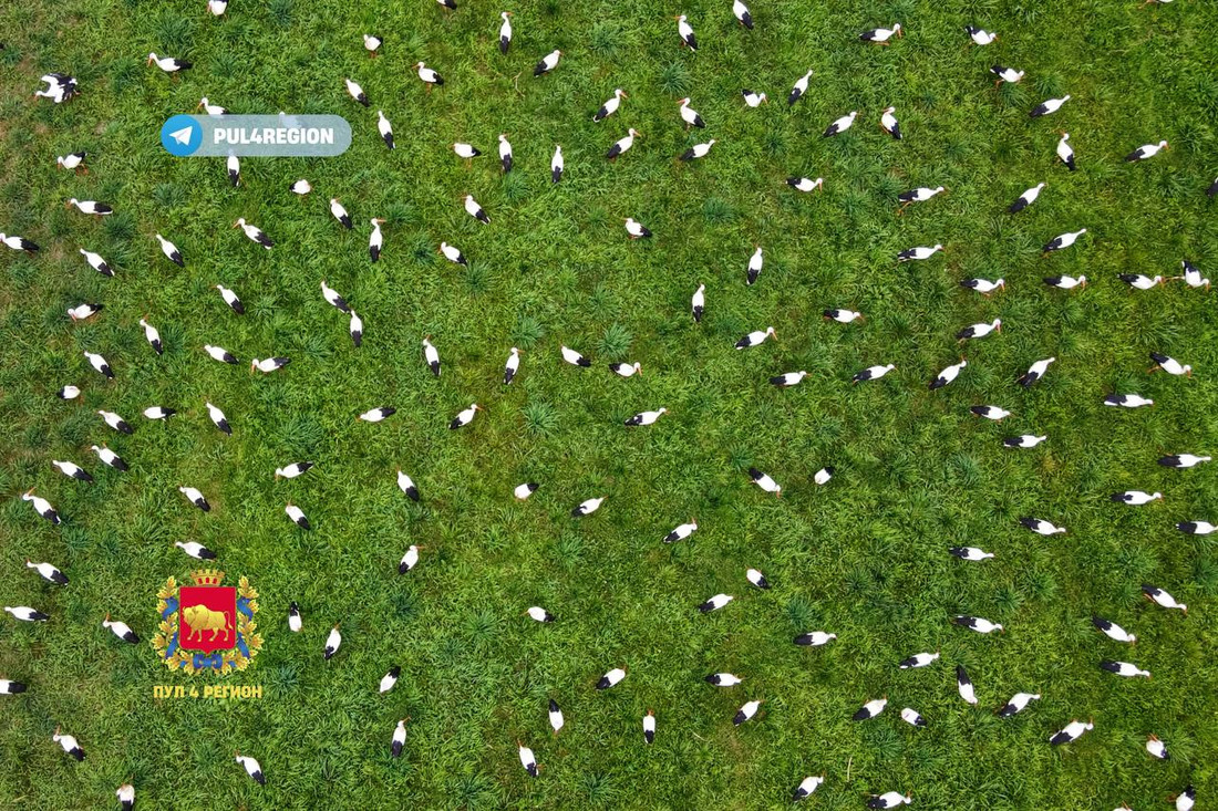 Сразу полтысячи аистов собрались в одной локации под Гродно. Фото опубликовал телеграм-канал «Пул 4 Регион». Мы связались с орнитологом компании «Дикая природа» Александром Винчевским, чтобы выяснить: чем птиц могло так привлечь именно это место?