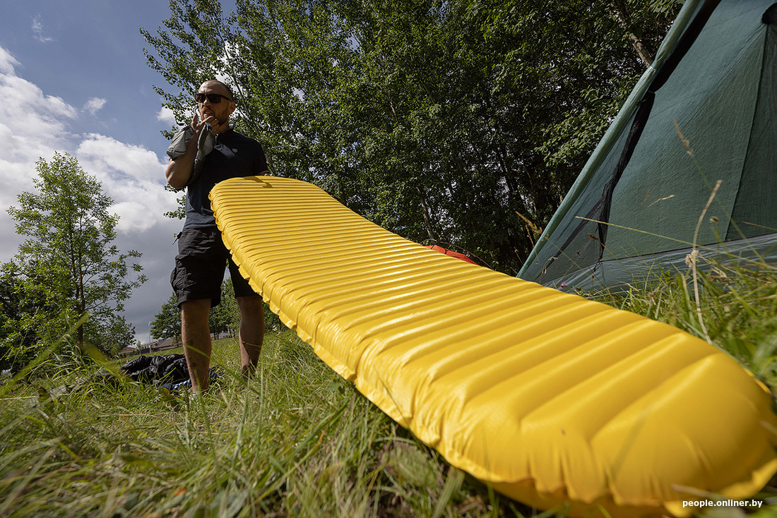 Так и спальники: можно спокойно брать синтетический конверт, не вдаваясь в подробности, какой там утеплитель. Летний отдых в Беларуси не предполагает экстремально низких температур. Да, он может весить под 2 килограмма, и что? Есть мнение, что летом можно вообще обойтись без спальника. Но я с этим не согласен: часто палатки разбивают у реки или озера, а от воды идет холод. Человек может умереть от гипотермии даже при плюс 8. Поэтому вопрос серьезный: можно сэкономить на качестве спальника, но брать его с собой нужно обязательно.