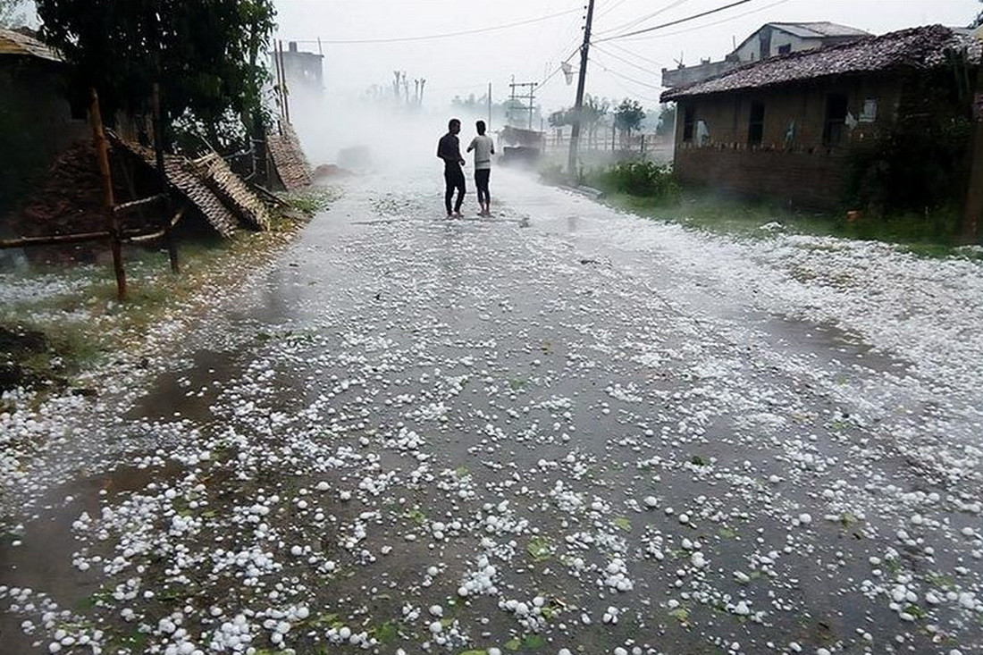 Так эта же полоса града выглядела из Непала (снимки The Himalayan Times):