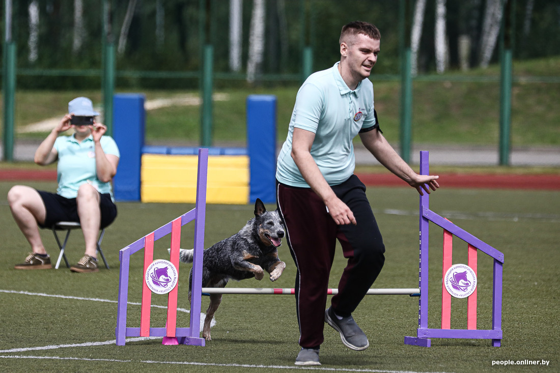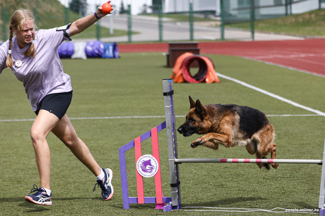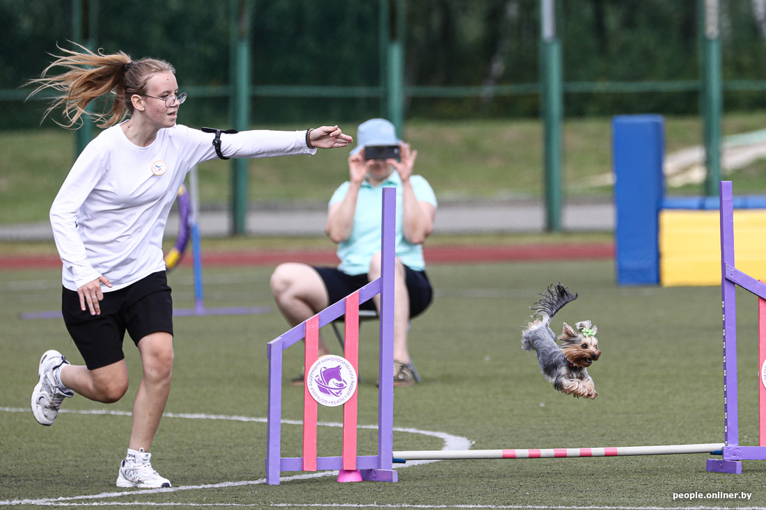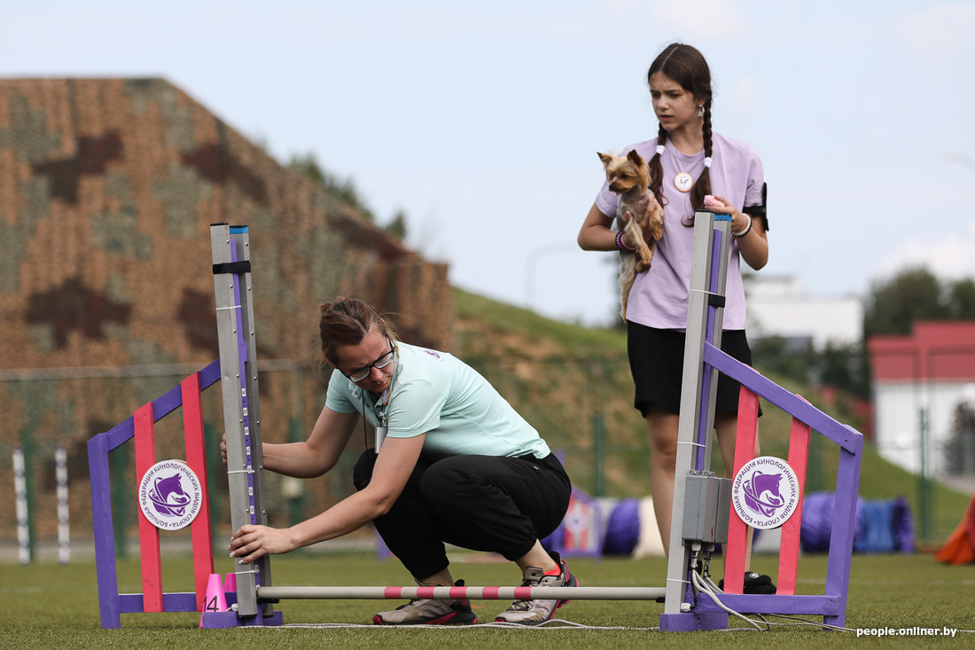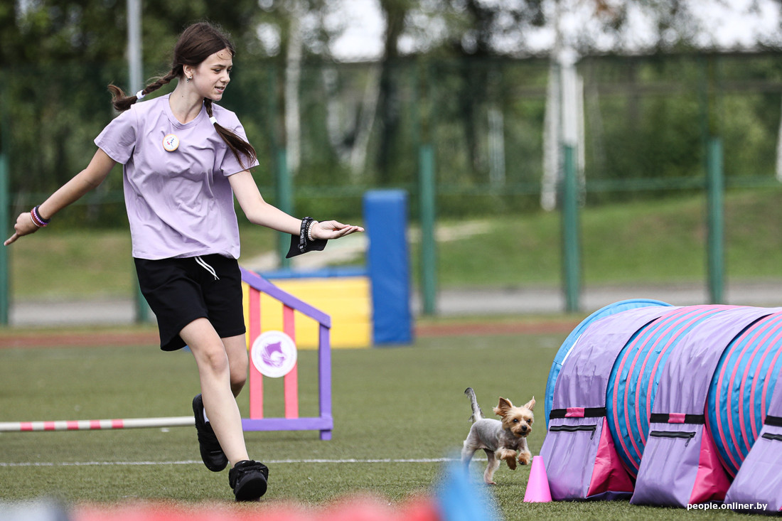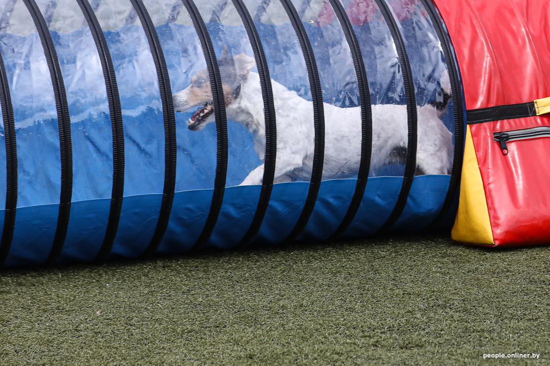 Сегодня под Минском проходят соревнования по аджилити. Если кратко, то это когда собака на скорости проходит полосу препятствий. Важно не перепутать последовательность элементов и ничего не снести, поэтому рядом с четвероногим обычно бежит его сконцентрированный хозяин. Допускаются все породы, поэтому после «немца» может выступать йорк или дворняга (но в разных категориях в зависимости от роста собаки). Пока зрители умилялись пушистым спортсменам, наш фотограф успел сделать много смешных фотографий — показываем их вам.