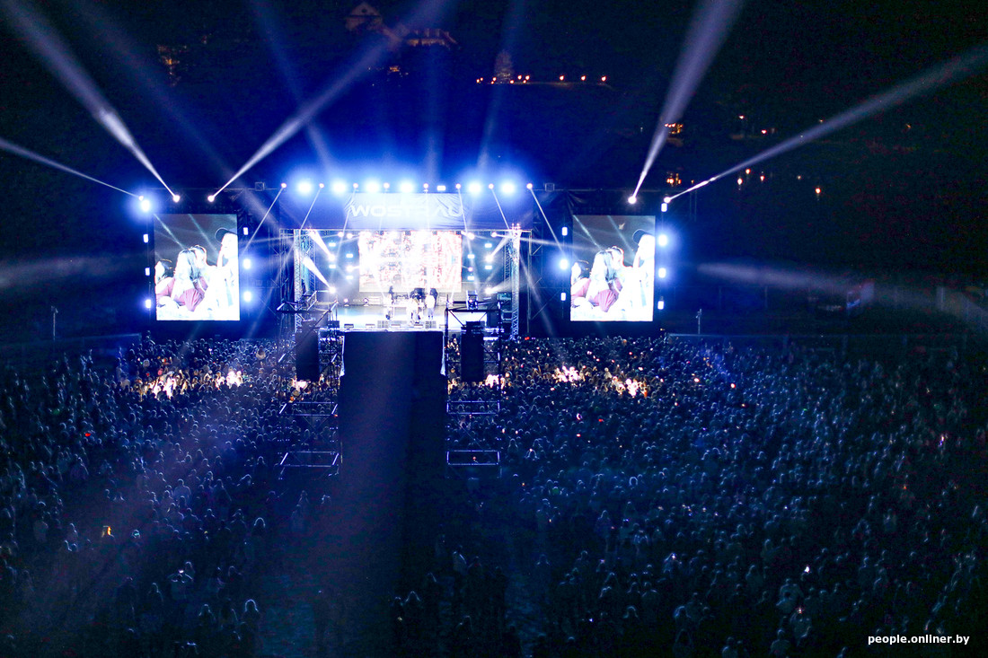 В эти выходные, кроме моих тупых шуток, покой Радзивиллов будут слегка нарушать десятки поп-артистов и тысячи зрителей. Фестиваль Wostrau проходит в Несвиже уже второй год. Вероятно, это самое крупное событие для города, и людям нравится: вокруг нас огромное количество улыбающихся местных жителей и приезжих.