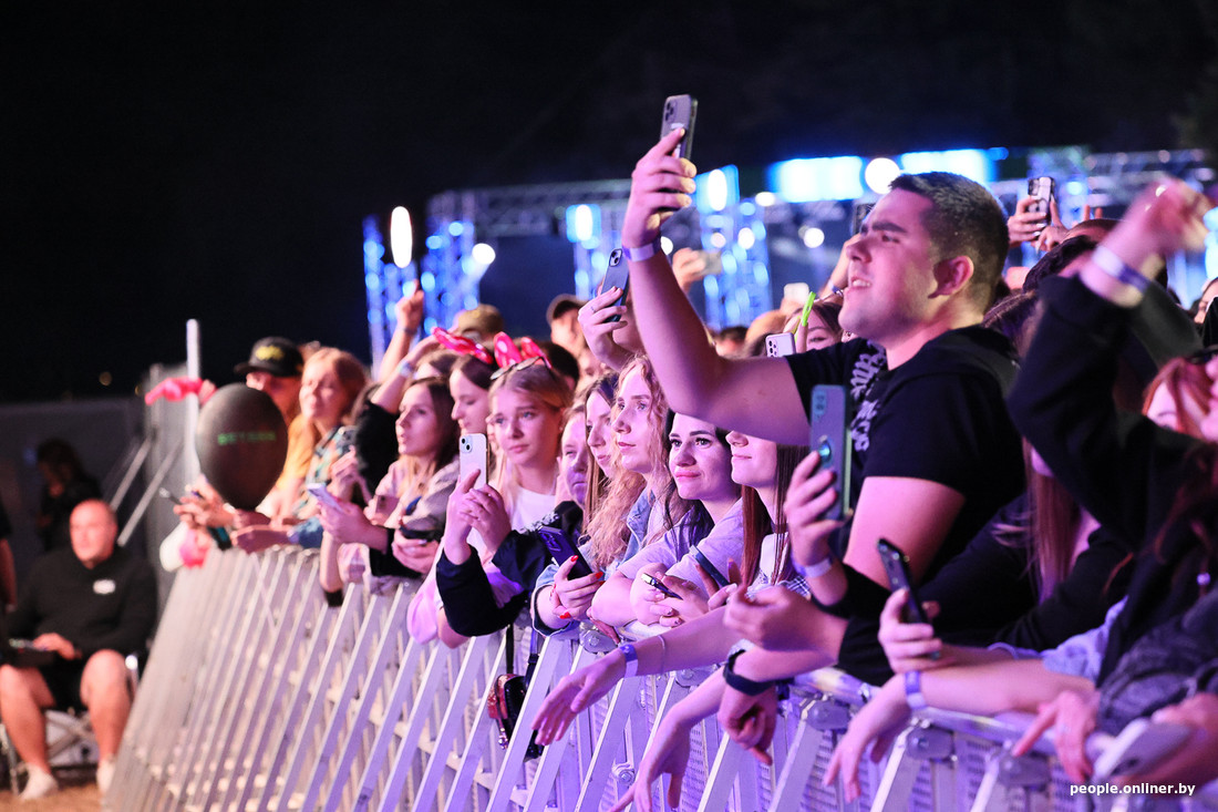 Люди курсируют между фуд-кортом, пивными палатками и туалетами. Порой в этих локациях собирается бо́льшая толпа, чем под сценой. Но все только начинается. Еще есть сцена с диджеями, сцена Pepsi, которая горит многочисленными LED-экранами так, что видно еще до подъезда к Несвижу, куча разноцветных фотозон, перманентно занятых девчонками с телефонами. В общем, сегодня заняться посреди Английского парка есть чем не только белкам. Прямо между деревьями выросла большая и яркая музыкальная ярмарка.