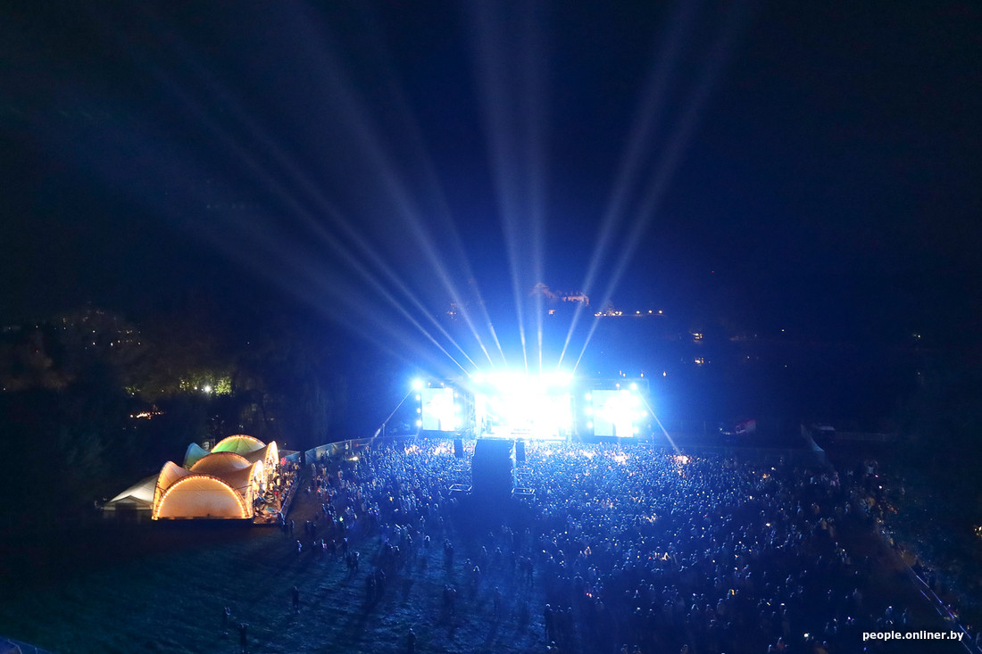 Через пару мгновений мы уже летали в десятках метров над сценой, наблюдая, как тысячи человек копошатся внизу под главный саундтрек всех кнопочных телефонов — «Коламбия Пикчерз не представляет». Вот такие снимки получились у Максима:
