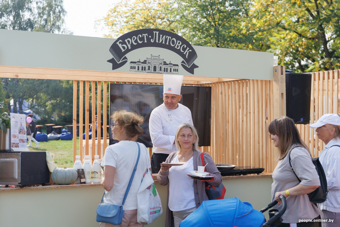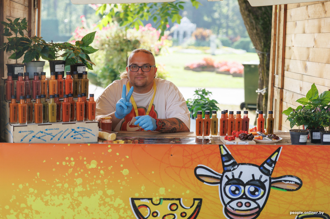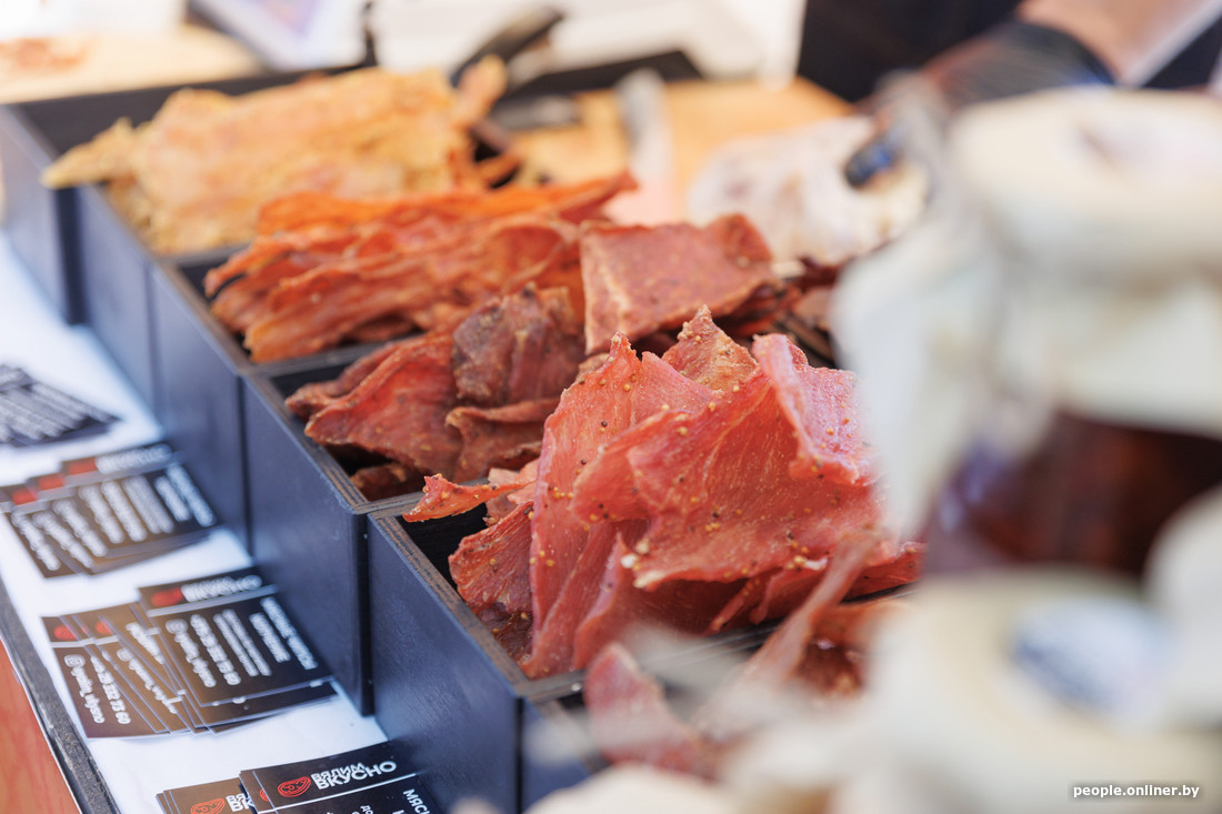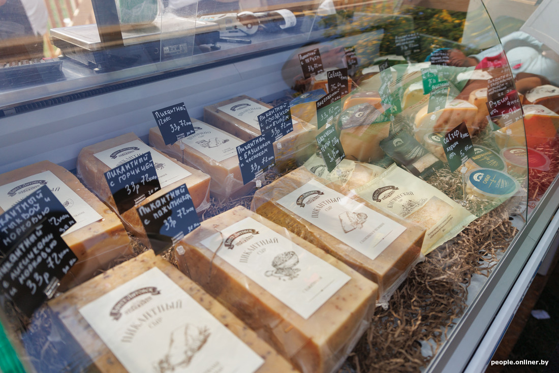 Вся территория разделена на три поляны. Вместе с основной сырной представлены еще две — мясная и медовая. Больше всего людей прильнули к прилавкам и столам крупных молочных производств. Немного дальше торгуют фермеры и домашние сыровары. Привычные сорта чередуются с экзотикой и авторскими творениями.