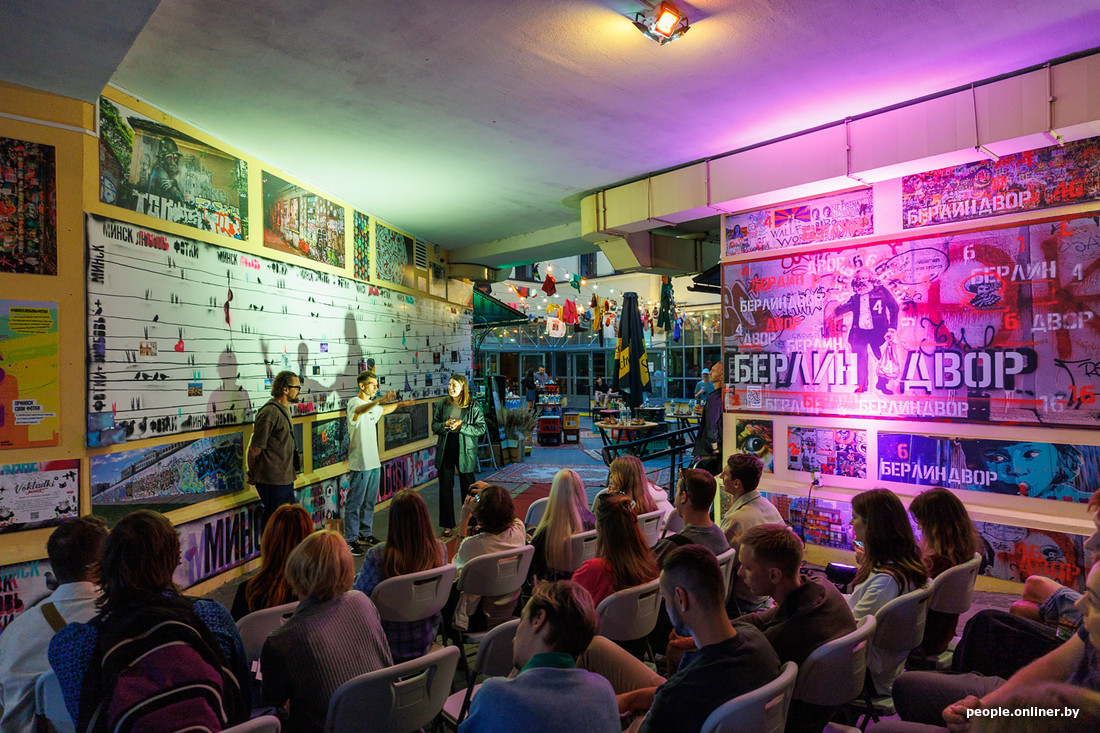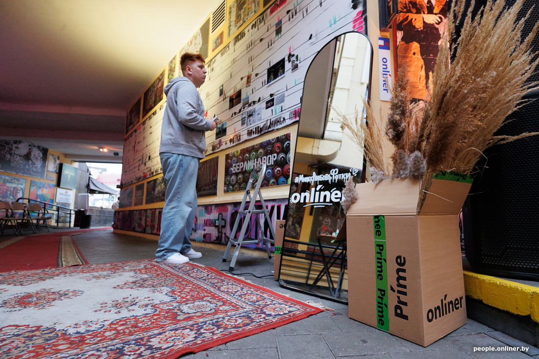 — Суть проста: вот на этой стене, старательно разрисованной Антоном, любой человек сможет приклеить свою фотографию, связанную с Минском. Что угодно. Пусть это будет проявлением вашего творчества. Добавьте частичку себя в это место. Все ваши фото будут висеть тут до ноября, а потом мы выберем лучшие работы и наградим их авторов. Призом станет 25-литровая бутыль рафалии — напитка, придуманного нашими предками, — объясняет Женя.