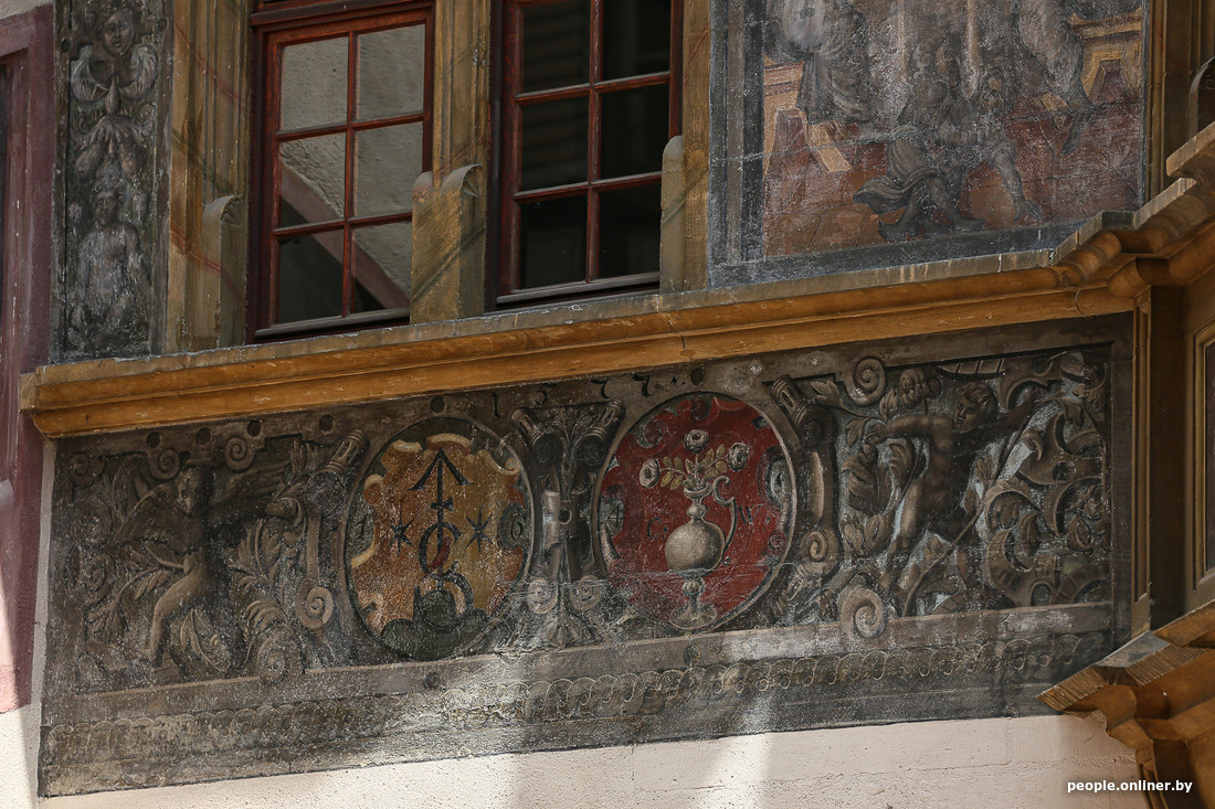 На стенах и медальонах изображены различные библейские сюжеты, аллегорические образы и немецкие императоры.