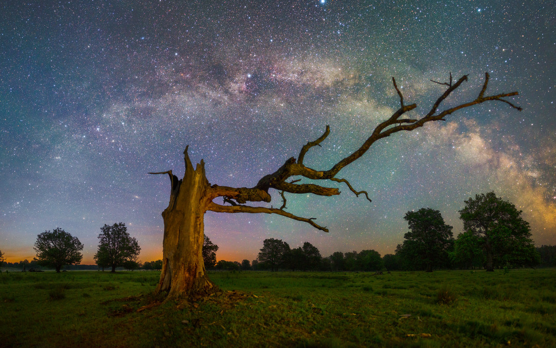 Для больш эстэтычнай кампазіцыі Віктар і Ганна знайшлі некалькі самотных дубоў, паставілі штатывы і практычна адначасова націснулі на спуск затвора.
