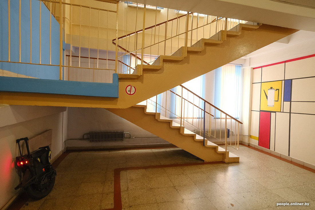 Мы заходим в здание. Первым делом удивляет график работы: столовая открыта до 20:00. Пока я пытаюсь вспомнить, а есть ли в Минске другие «долгоиграющие» столовки, Голенков постепенно узнает места из прошлого: где-то здесь у лестницы была касса, на своем месте гардероб. А вот сам зал, конечно, уже отличается от того, что было здесь в конце девяностых. Напоминаний о сцене, которая была чем-то похожа на ринг, тоже не осталось. Сейчас тут просто аккуратная столовка.