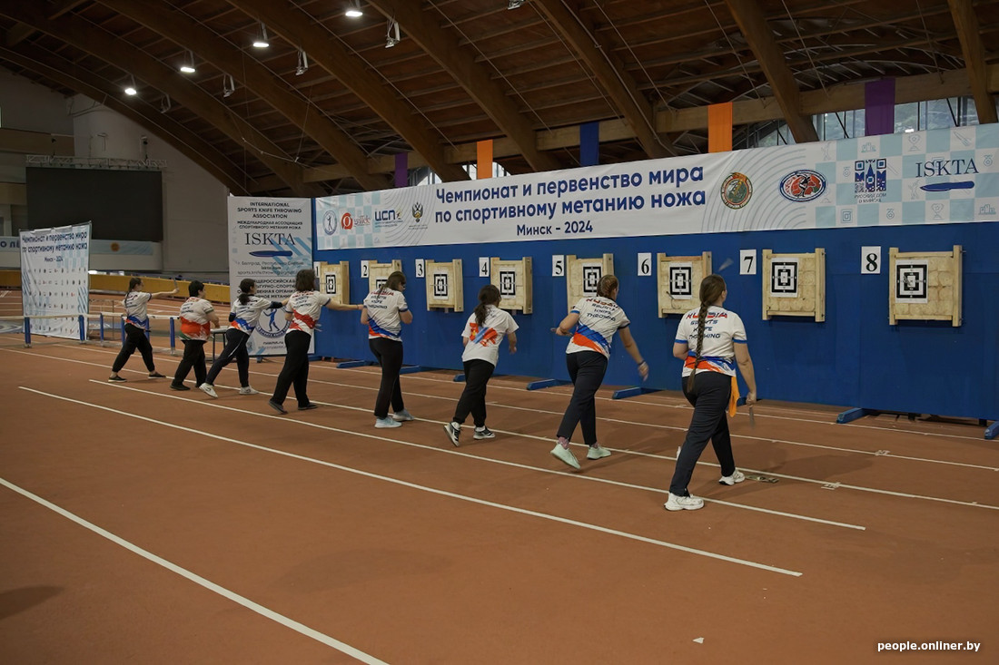 — Спортивное метание ножа зародилось в России, изначально это было дисциплиной унифайта (универсальный бой — вид спорта, включающий в себя преодоление полосы препятствий, метание ножей, стрельбу и рукопашный бой. — Прим. Onlíner), а с 2019-го стало самостоятельным видом спорта на территории РФ. В Беларуси он пока культивируется по нашей инициативе, — говорит Сергей Корнеев. — Поскольку вид спорта был основан россиянами, у них и самая сильная сборная. Но мы сражаемся, и есть дистанции, на которых тоже показываем результат. Надеемся, что у нас тоже будут медали.