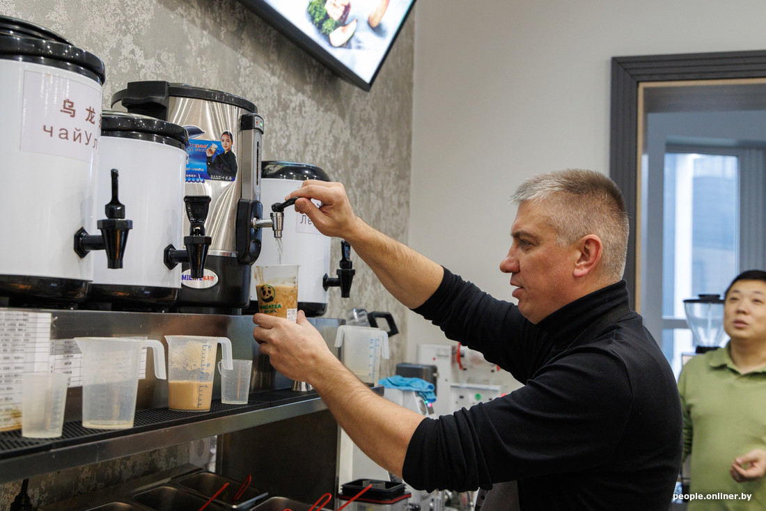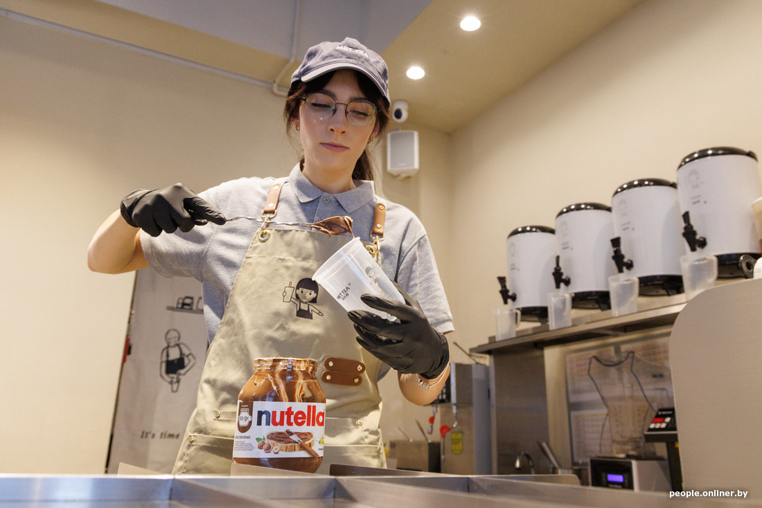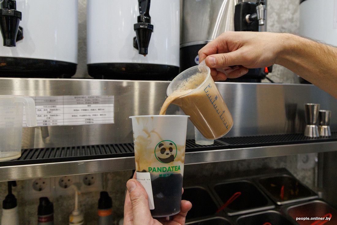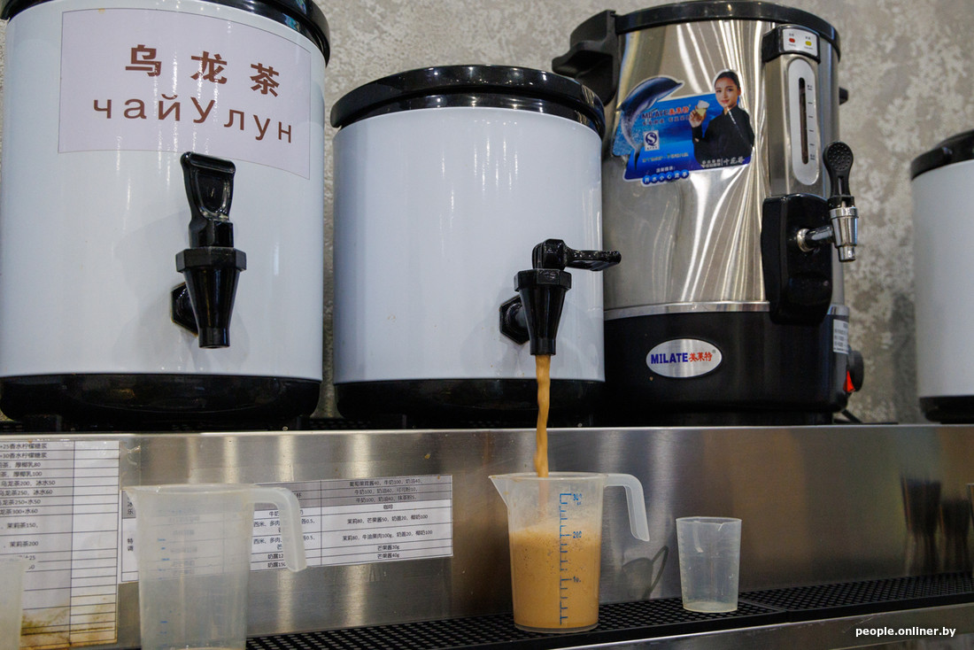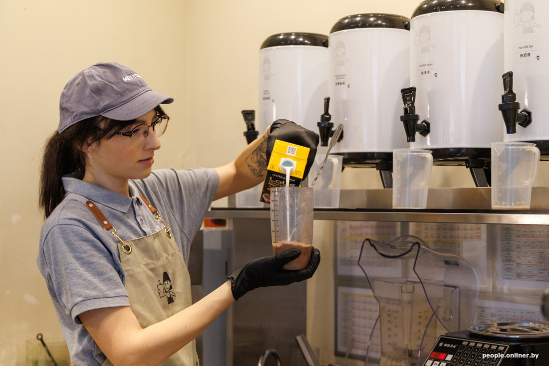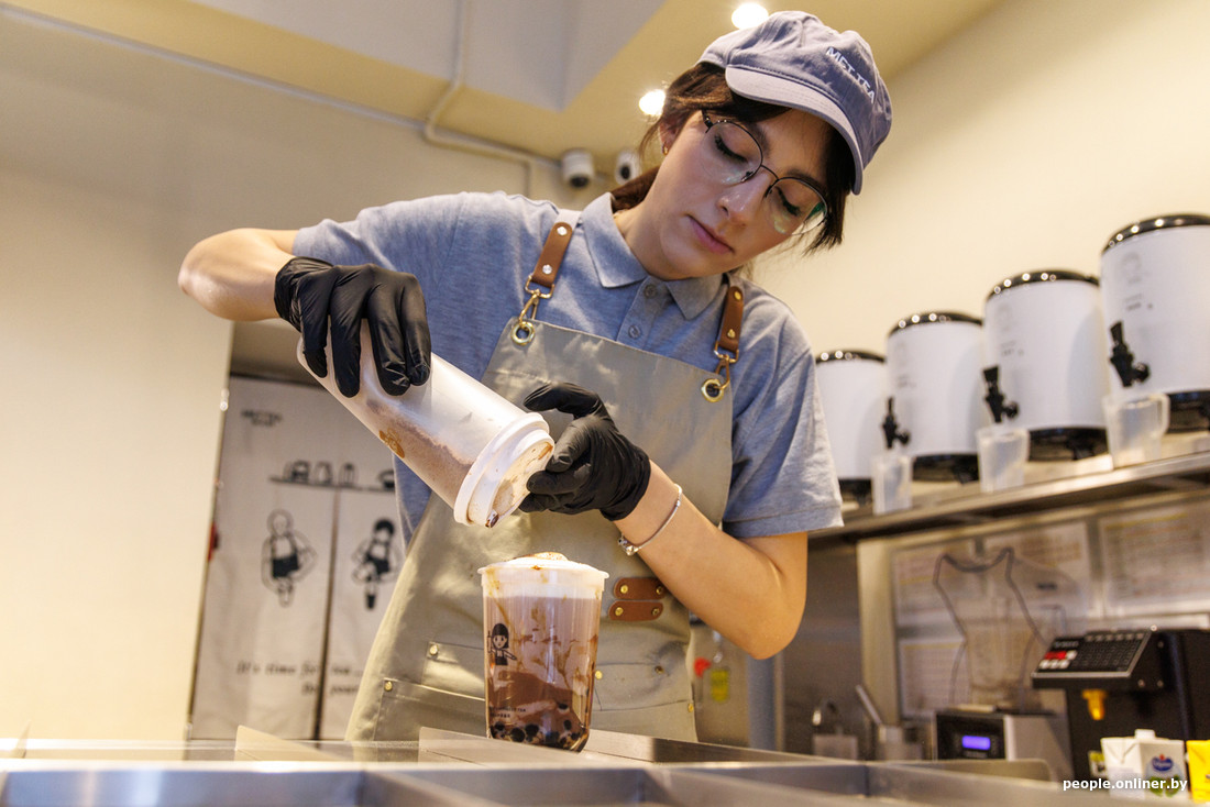 — Компании девушек чаще всего заказывают фруктовые напитки, дети берут молочные. У нас есть как холодные напитки, так и теплые. Если кому-то что-то не понравилось, мы переделаем, для нас это не проблема. Еще одно наблюдение: если белорусы предпочитают фруктовые напитки, различные чизы (напитки, покрытые солоноватой шапочкой из крем-чиза. — Прим. Onlíner), то китайцы в основном заказывают чаи — молочный и жасминовый.