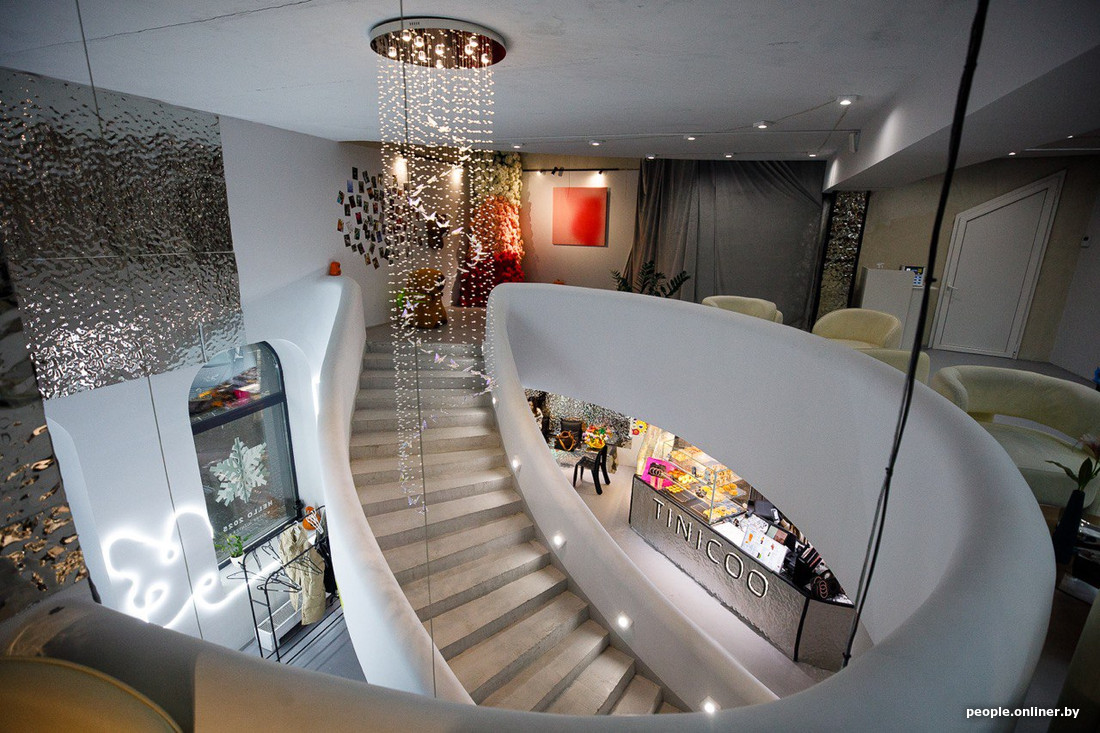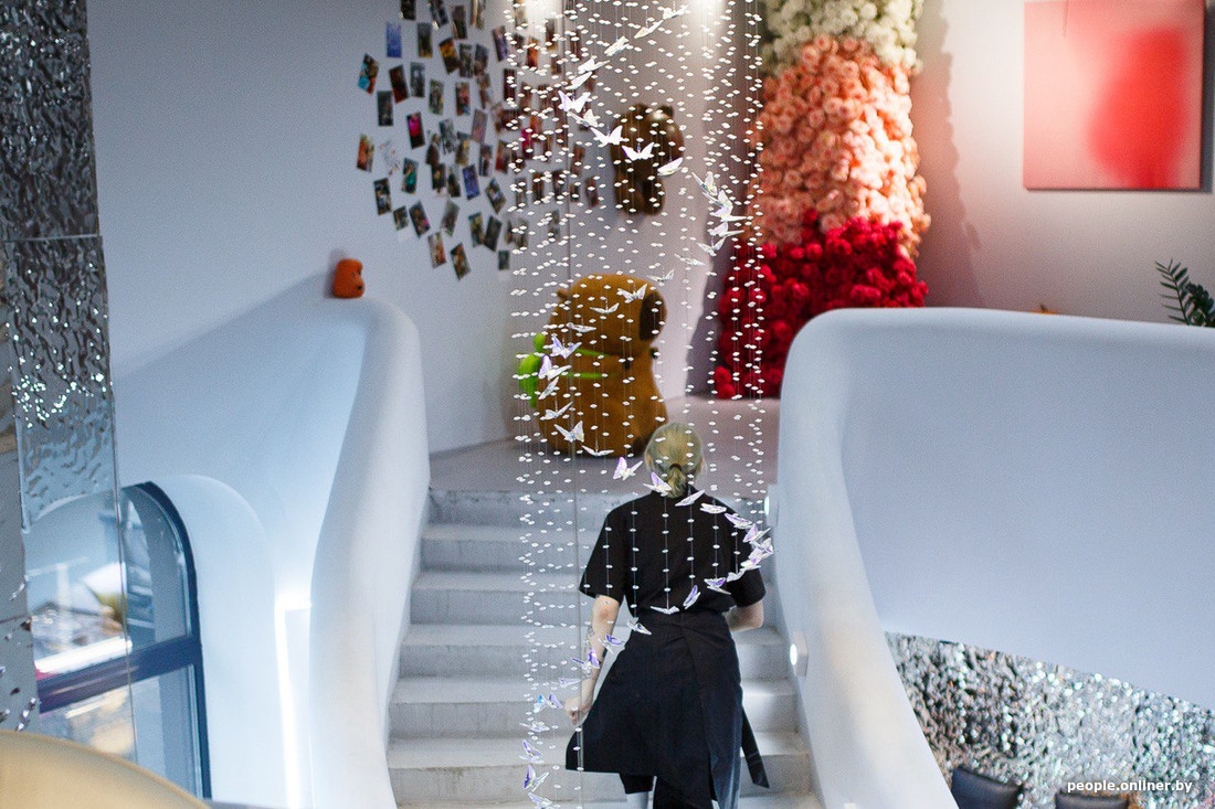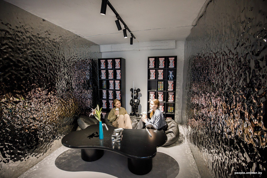 Тана не лукавит. Двухэтажное пространство, объединенное лестницей, напоминает одну большую фотозону с удобной мебелью. Девушка дополняет, что интерьер будет меняться. Вскоре на втором этаже должна появиться отдельная локация, где родители с детьми смогут раскрашивать красками белых мишек — маленькие аналоги «беарбриков» — фигурок, ставших настоящими арт-объектами. Примерно вот таких: