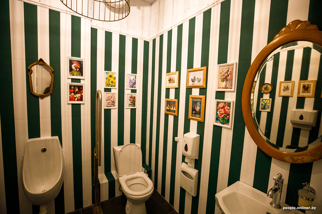 Картины и рисунки, кстати, есть даже в уборных — все выполнены в разных стилях.
