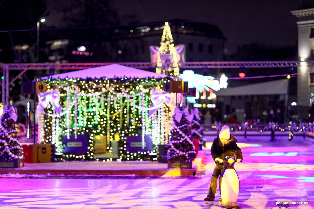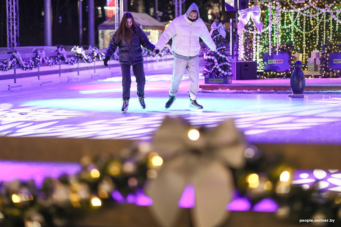 В Минске на одну праздничную локацию стало больше. На стадионе «Динамо» в понедельник открыли рождественскую ярмарку и каток.